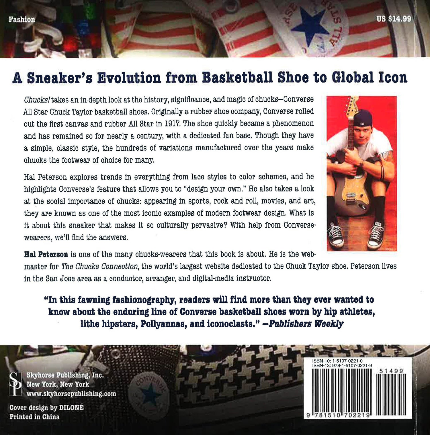 In this book, shoe enthusiast Hal Peterson takes an in-depth look at the history, significance, and magic of "Chucks." Originally a rubber shoe company, Converse rolled out the canvas All Star in 1917, nicknamed "Chucks" for the basketball hall-of-famer, Charles "Chuck" Taylor, who was a lifelong promoter. The shoe quickly became a phenomenon that has lasted for nearly a century with a fanbase that has varied greatly. Though they have a simple, classic style, the many shoes photographed here make clear that true believers always find ways to individualize their favorite footwear, even though black was the only color available for almost fifty years.