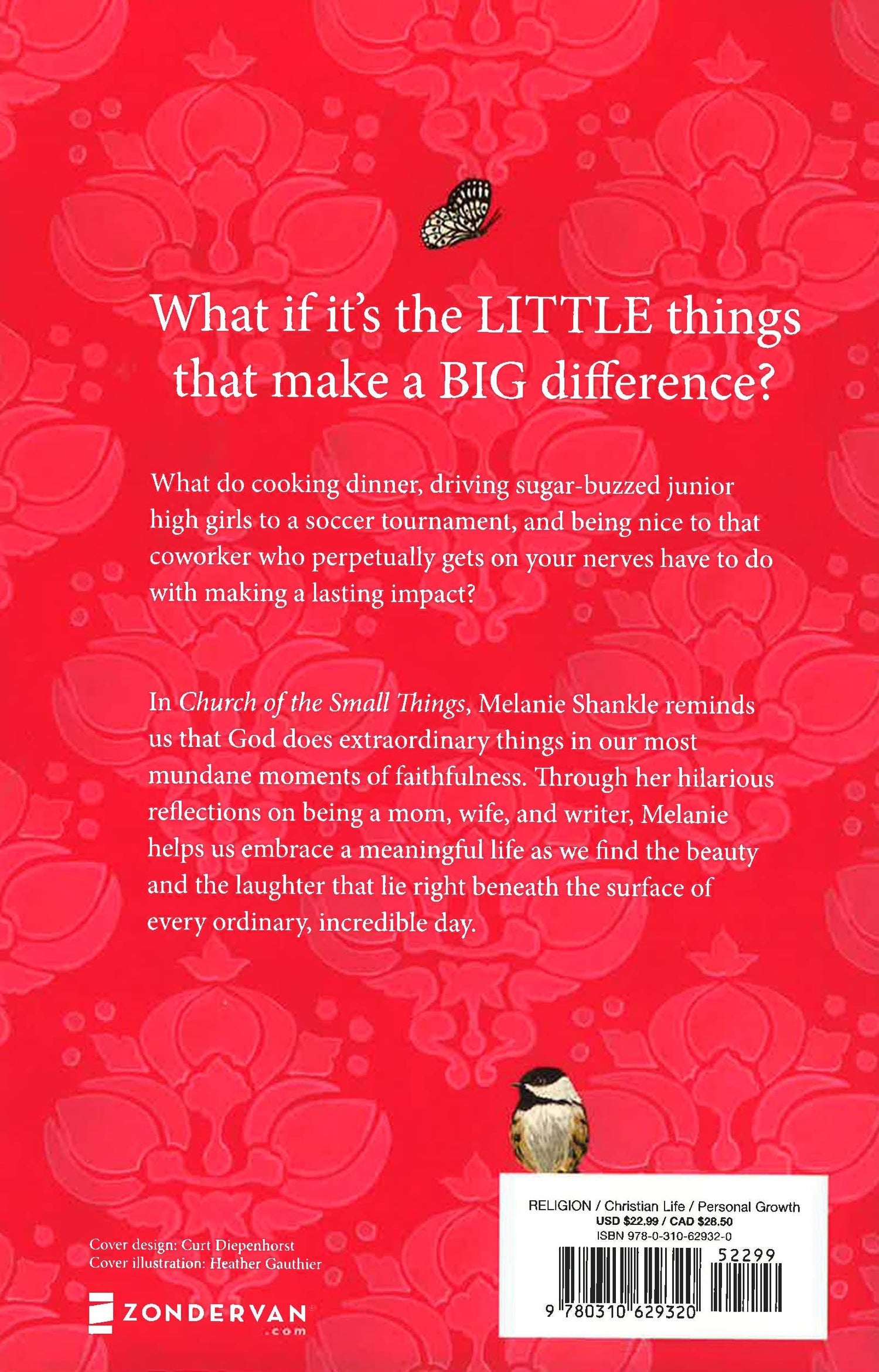 Melanie Shankle, New York Times bestselling author and writer at The Big Mama Blog tackles these questions head on in her fourth book, Church of the Small Things. Easygoing and relatable, she speaks directly to the heart of women of all ages who are longing to find significance and meaning in the normal, sometimes mundane world of driving carpool to soccer practice, attending class on their college campus, cooking meals for their family, or taking care of a sick loved one.