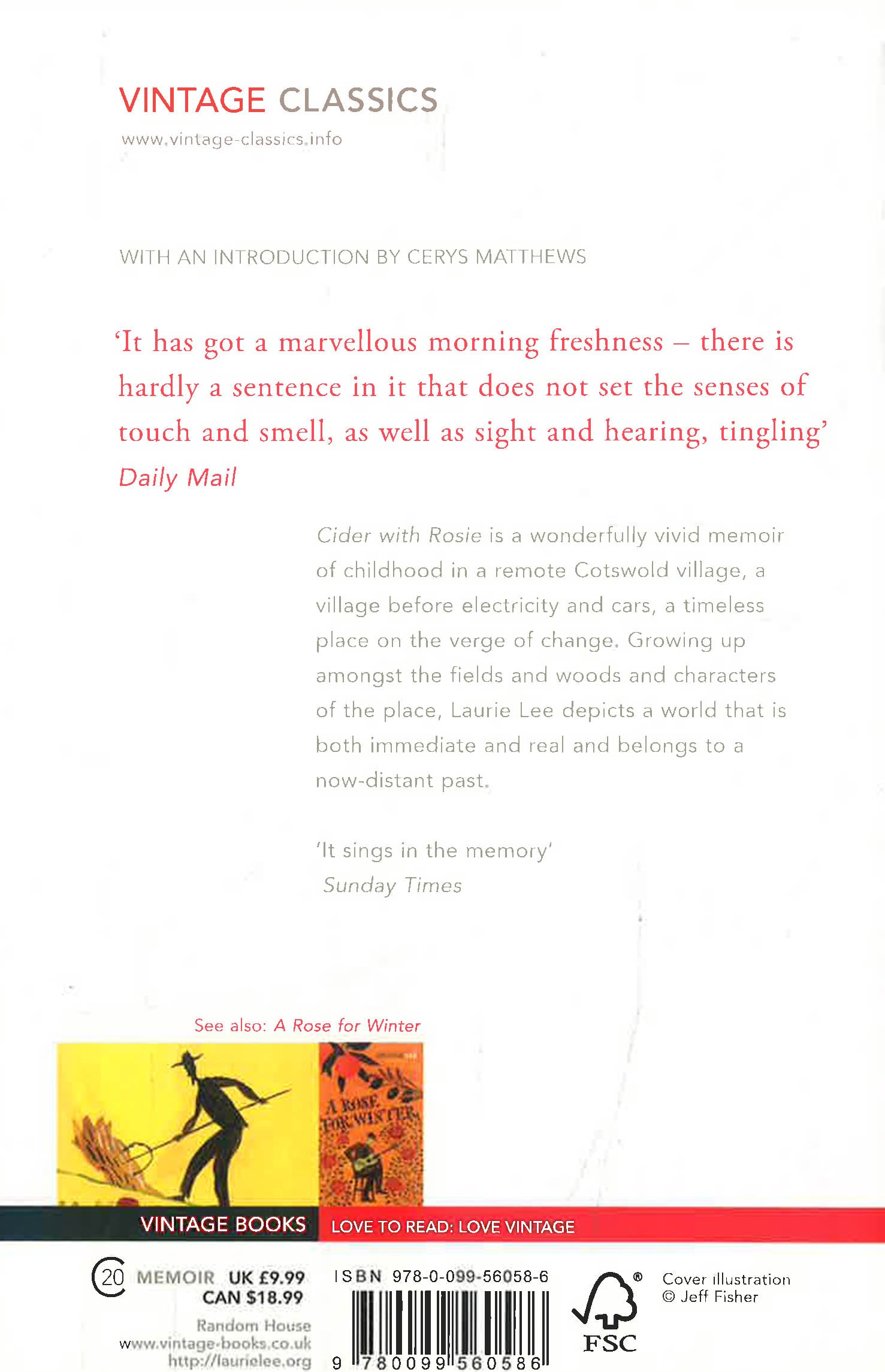 Cider with Rosie is a wonderfully vivid memoir of childhood in a remote Cotswold village, a village before electricity or cars, a timeless place on the verge of change. Growing up amongst the fields and woods and characters of the place, Laurie Lee depicts a world that is both immediate and real and belongs to a now-distant past.