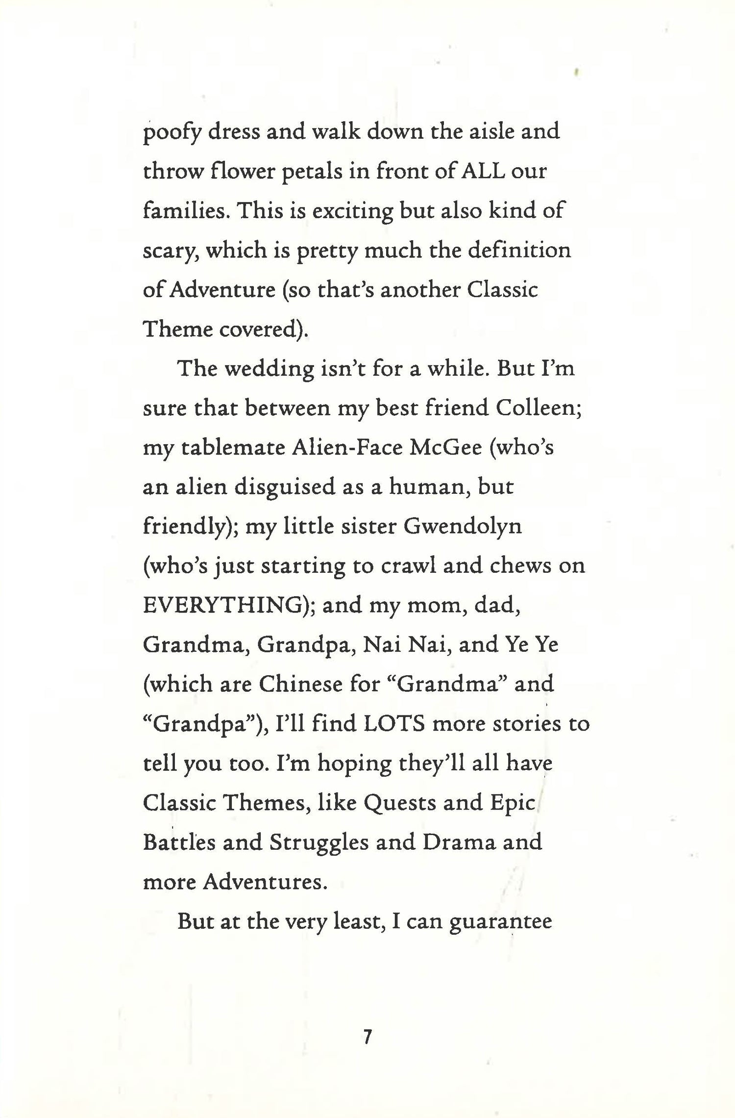 Priscilla "Cilla" Lee-Jenkins has just finished her (future) bestselling memoir, and now she's ready to write a Classic. This one promises to have everything: Romance, Adventure, and plenty of Drama--like Cilla's struggles to "be more Chinese," be the perfect flower girl at Aunt Eva's wedding, and learn how to share her best friend.