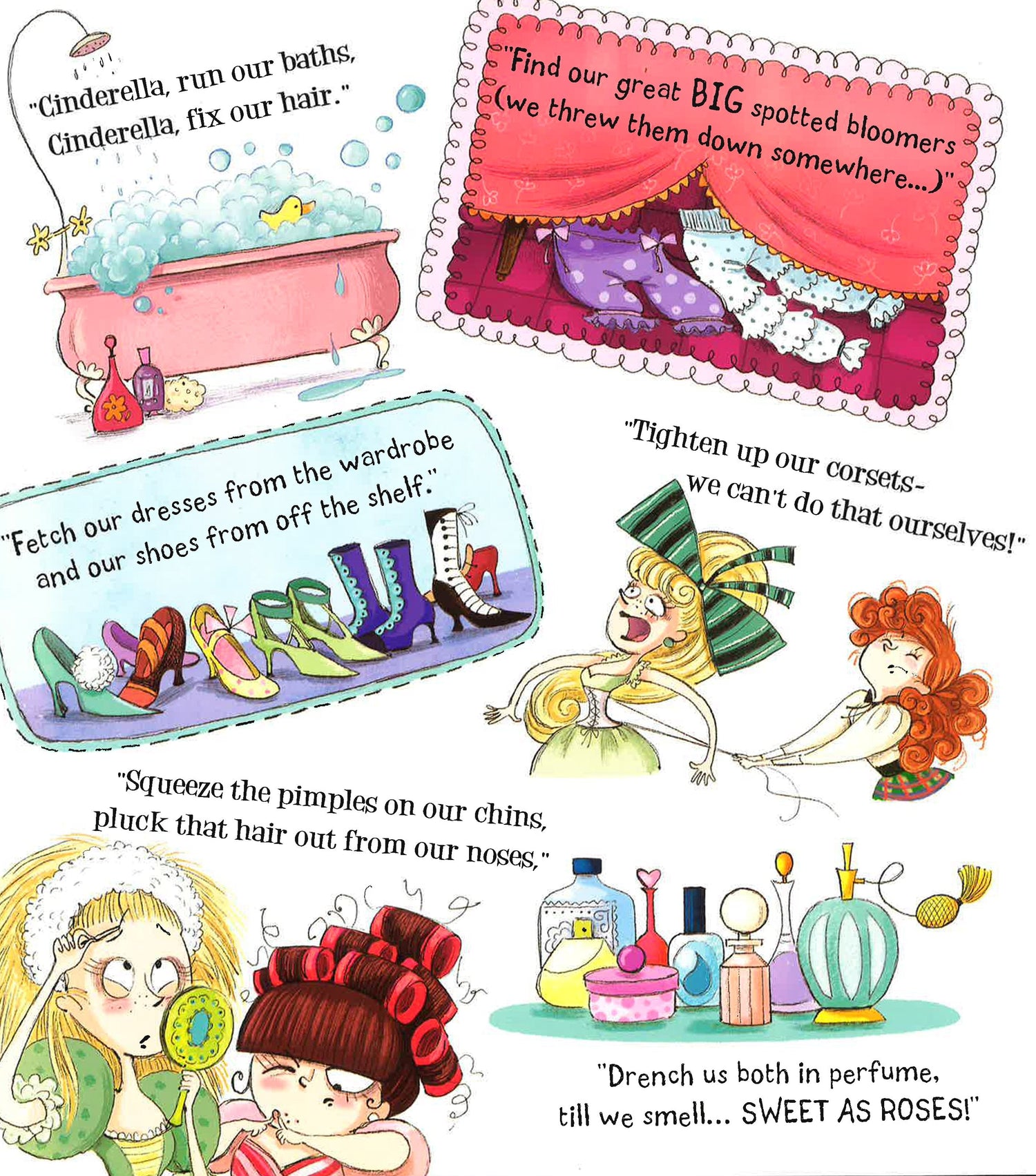 A fun and feisty picture book retelling of a classic fairytale by bestselling author Mark Sperring. Once upon a time there was a girl called Cinderella who lived with her two VERY bossy sisters. When she was not cooking or cleaning, Cinderella could be found mending her sisters' shoes, or even fixing the car! One day, an invitation arrives to a ball at the palace. But Cinderella is kept so busy helping her bossy sisters get ready - squeezing their pimples and finding their spotty bloomers - that she has no time to get ready herself, until a visit from a fairy godmother changes her luck forever!