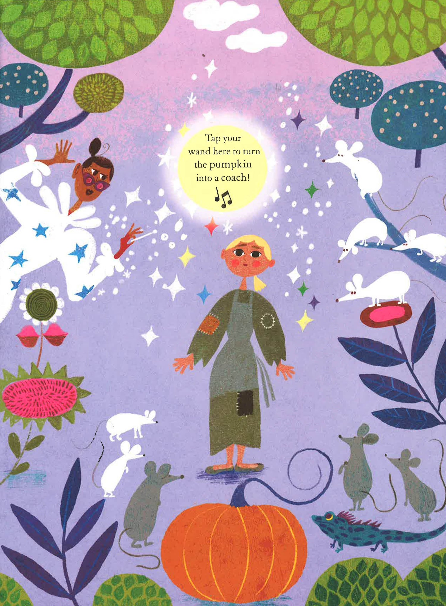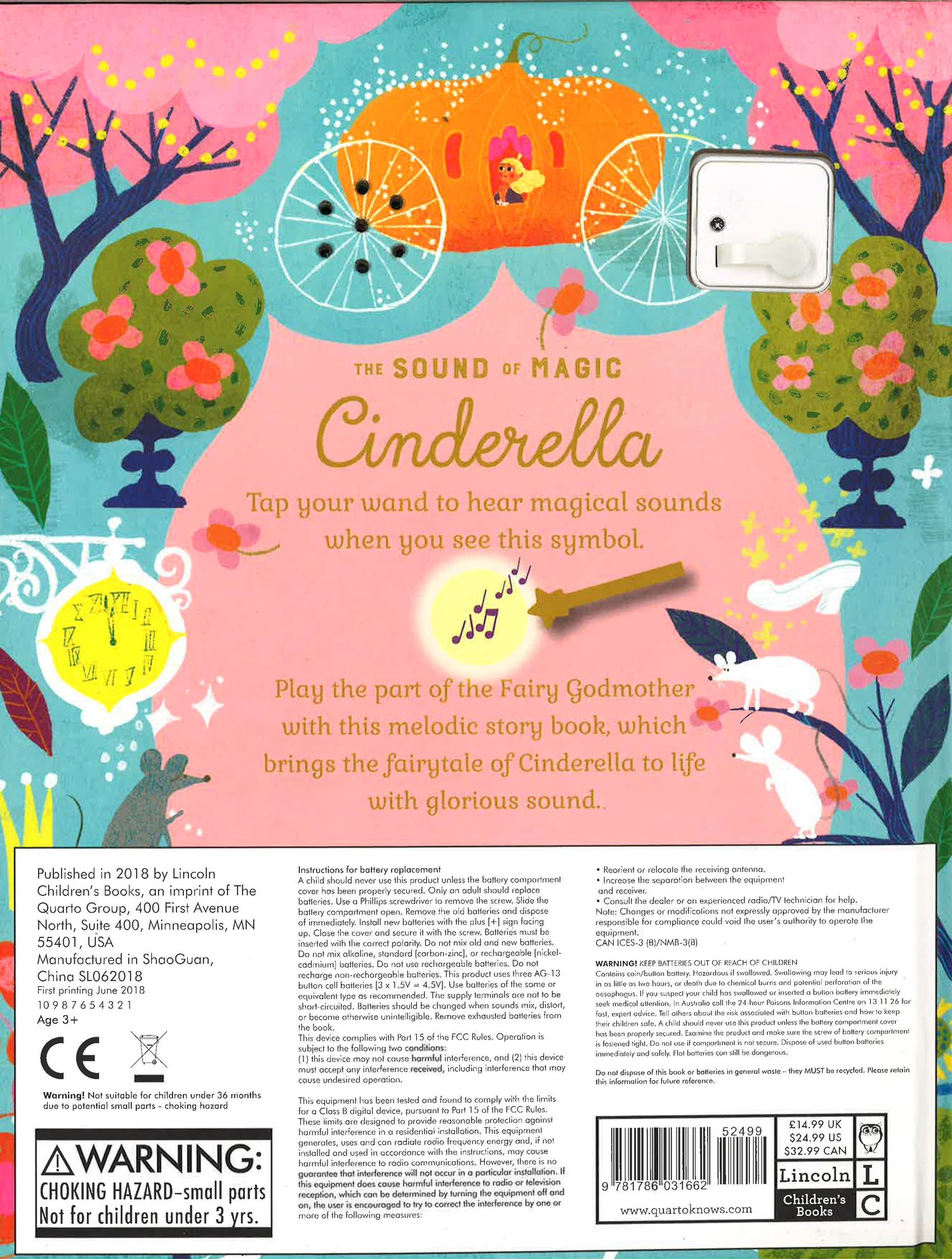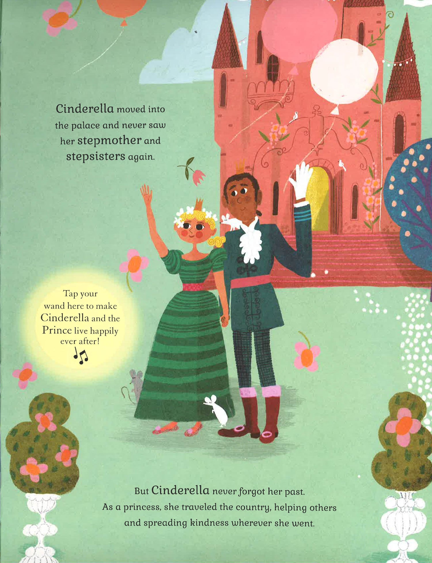 Experience the magic of Cinderella like never before with this gorgeous interactive sound book, which comes complete with your very own sparkling gold-foil magic wand! Become the Fairy Godmother's assistant by tapping the wand on the musical notes as you read the story. Then listen and see the magic happen as you turn the page. Follow the story of the unfortunate, rag-clothed girl who dreams of going to the ball, brought to life with magical sounds and the colourful, quirky illustrations of Sanna Mander. Tap your wand, when prompted, to turn the pumpkin into a coach, to give Cinderella a beautiful dress, to make Cinderella and the Prince fall in love, and more. The Sound of Magic: Cinderella brings this classic tale up-to-date with contemporary artwork featuring characters with a wide range of skin tones. Batteries are included in the electronic sound component situated in the back cover. The included wand can be seen glittering through a cutout in the front cover. Young princes and princesses everywhere will love being part of the fairy tale magic.