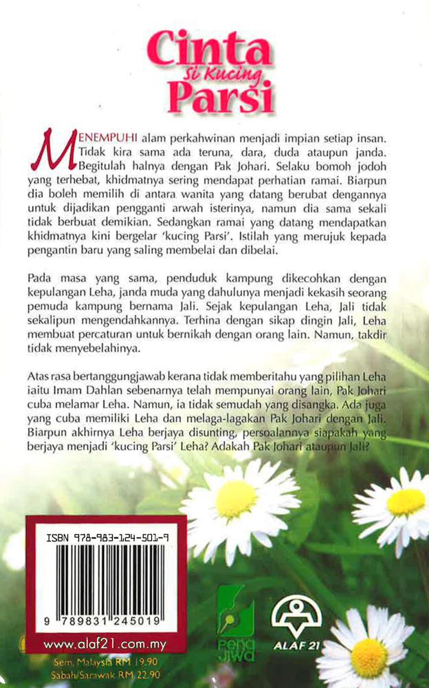 MENEMPUHI alam perkahwinan menjadi impian setiap insan. Tidak kira sama ada teruna, dara, duda ataupun janda Begitulah halnya dengan Pak Johari. Selaku bomoh jodoh yang terhebat, khidmatnya sering mendapat perhatian ramai. Biarpun dia boleh memilih di antara wanita yang datang berubat dengannya untuk dijadikan pengganti arwah isterinya, namun dia sama sekali tidak berbuat demikian. Sedangkan ramai yang datang mendapatkan khidmatnya kini bergelar kucing Parsi'. Istilah yang merujuk kepada pengantin baru yang saling membelai dan dibelai. Pada masa yang sama, penduduk kampung dikecohkan dengan kepulangan Leha, janda muda yang dahulunya menjadi kekasih seorang pemuda kampung bernama Jali. Sejak kepulangan Leha, Jali tidak sekalipun mengendahkannya. Terhina dengan sikap dingin Jali, Leha membuat percaturan untuk bernikah dengan orang lain. Namun, takdir tidak menyebelahinya. Atas rasa bertanggungjawab kerana tidak memberitahu yang pilihan Leha iaitu Imam Dahlan sebenarnya telah mempunyai orang lain, Pak Johari cuba melamar Leha. Namun, ia tidak semudah yang disangka. Ada juga yang cuba memiliki Leha dan melaga-lagakan Pak Johari dengan Jali Biarpun akhirnya Leha berjaya disunting, persoalannya siapakah yang berjaya menjadi kucing Parsi' Leha? Adakah Pak Johari ataupun Jali?