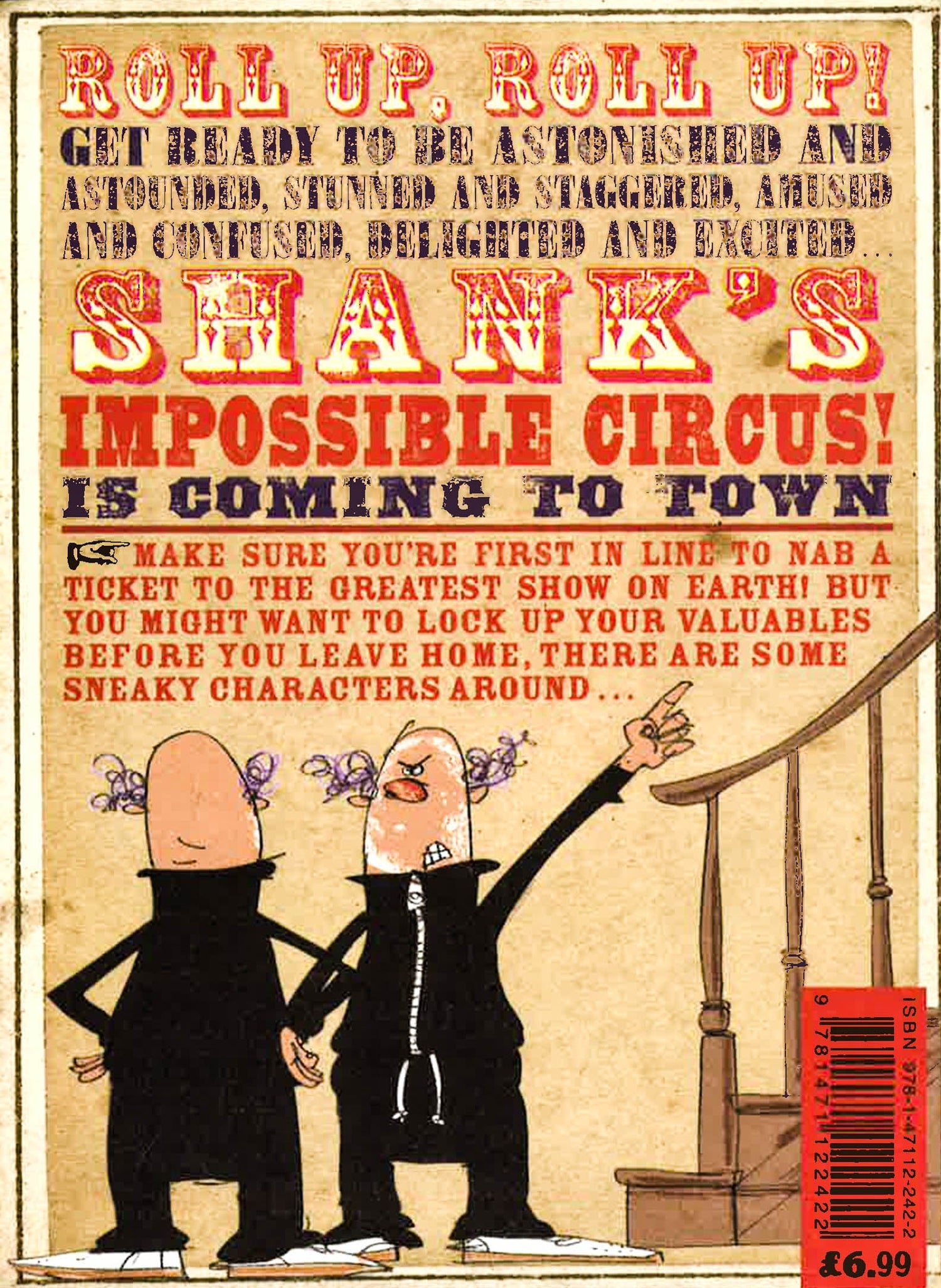 Hannah's life is boring, boring, boring! But when Armitage Shank's Impossible Circus comes to town, Hannah's world is turned on its head. Meeting Billy Shank, his astonishing camel, Narcissus, and a host of other bizarrely brilliant members of the circus. But all is not as it seems; Armitage Shank, evil ringmaster and Billy's surrogate father, has a dastardly plan involving light-fingered thievery.. can Hannah and Billy to stop his stinking scheme before it's too late…