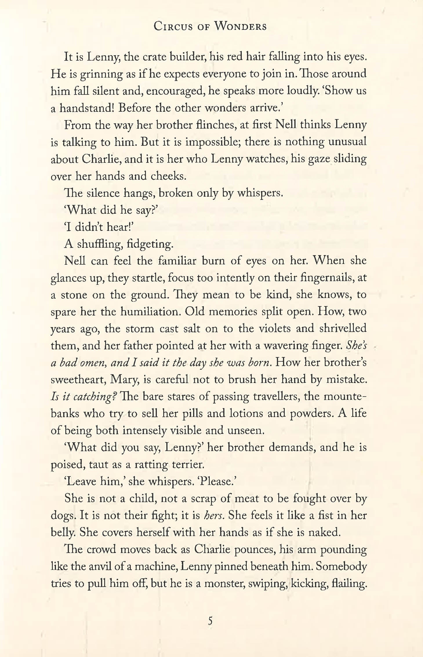 But when Jasper Jupiter’s Circus of Wonders arrives in the village, Nell is kidnapped. Her father has sold her, promising Jasper Jupiter his very own leopard girl. It is the greatest betrayal of Nell’s life, but as her fame grows, and she finds friendship with the other performers and Jasper’s gentle brother, Toby, she begins to wonder if joining the show is the best thing that has ever happened to her.