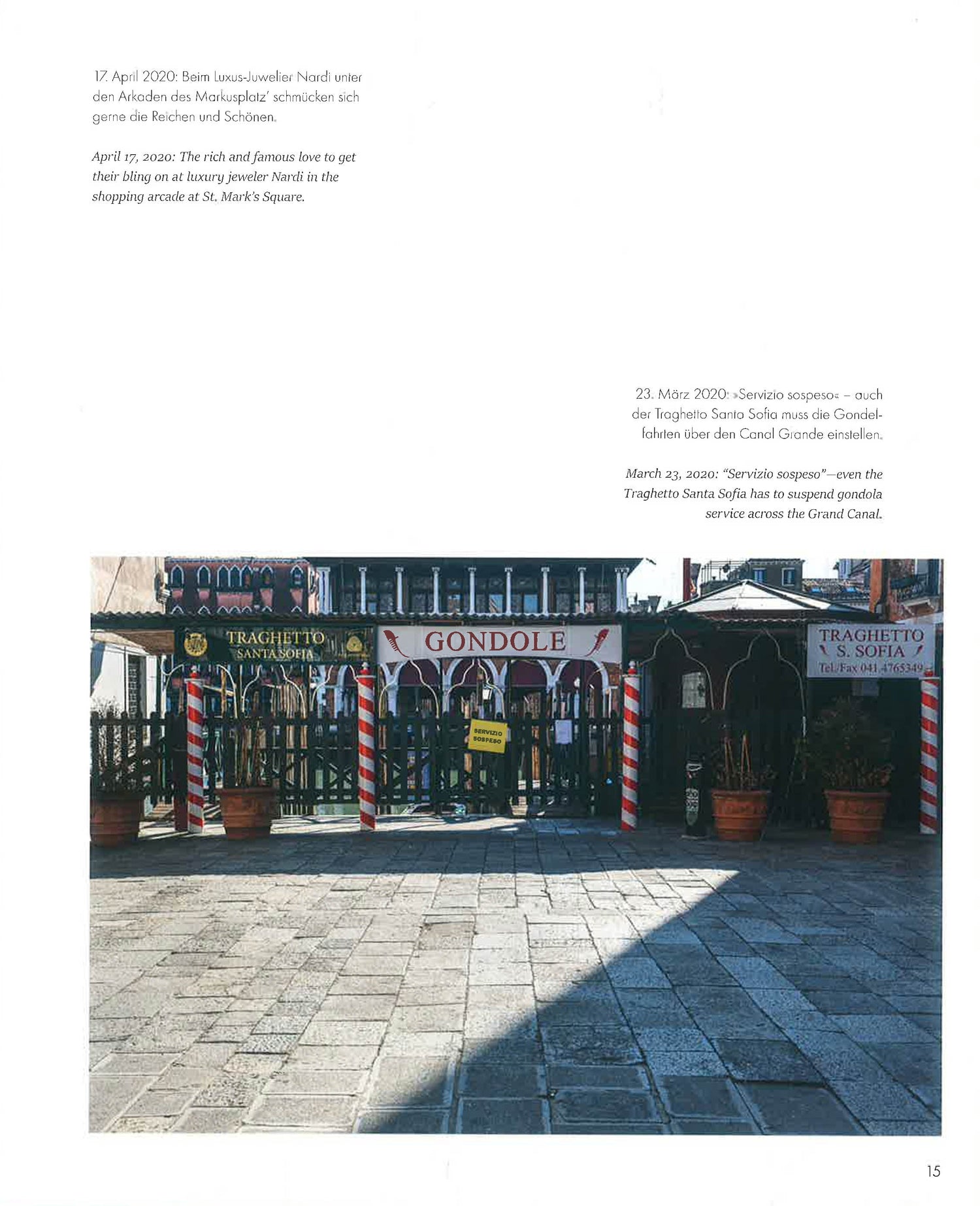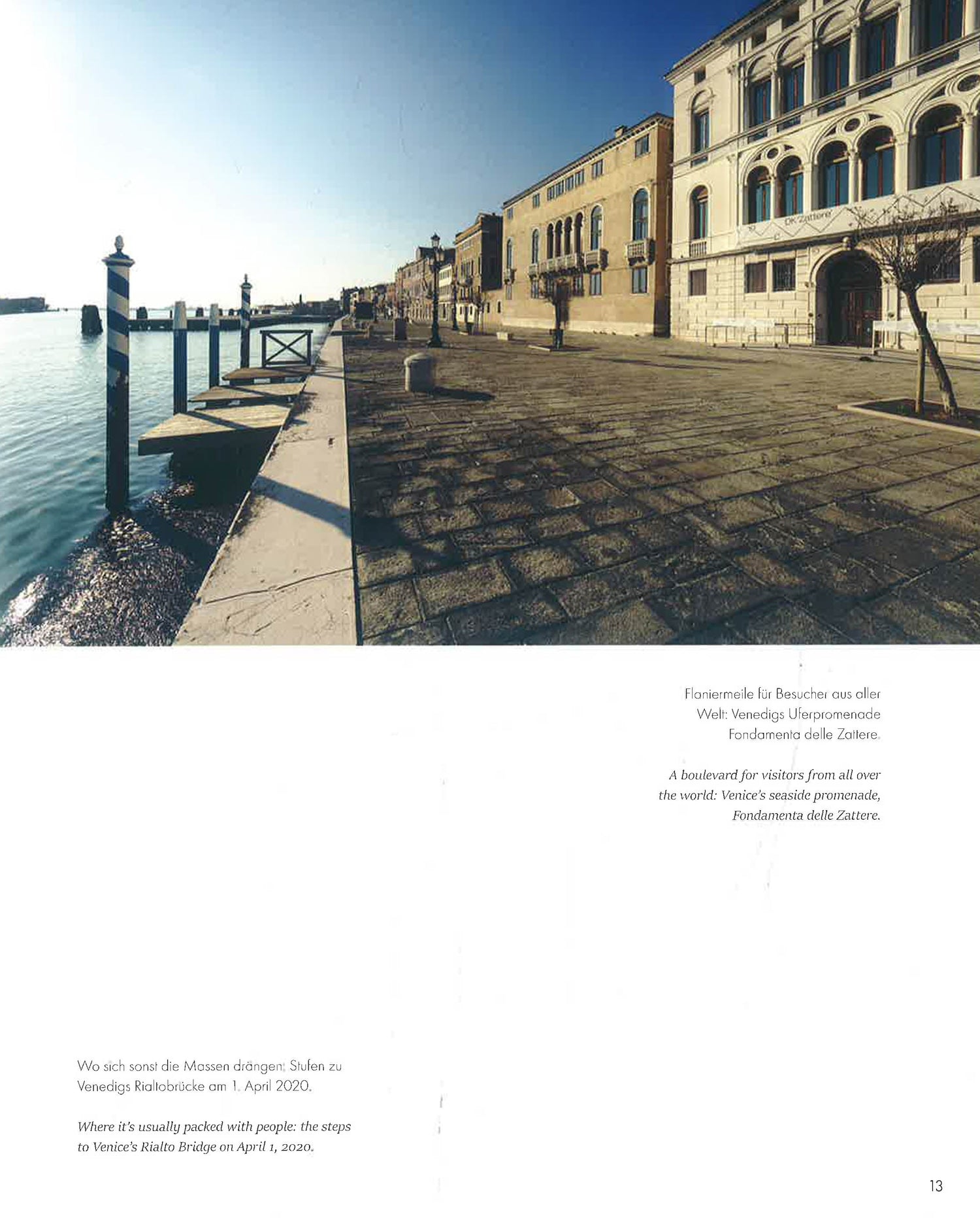 The London Eye at a standstill, against a brilliant blue sky. Venetian gondolas, resting beneath their tarps. The Trevi Fountain in Rome, Schloss Sanssouci Palace in Potsdam, the Brooklyn Bridge in New York… all deserted, in the middle of the day.