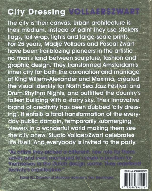 Unique and inspiring monograph. Includes the project Wish You Were Here in Rotterdam (Erasmus bridge - 20 March 2016) and includes a foreword by the mayor of Rotterdam Madje Vollaers and Pascal Zwart founded Studio VollaertsZwart in 1991 as a design studio for interdisciplinary design and visual communication. They investigate the interaction between disciplines such as architecture, sculpture, fashion and communication and use this knowledge to develop new visual scenarios. In the past 20 years VollaersZwart has developed into the 'haute sculpture' designers for city dressing, designing exhibitions and art and communication on the streets and in the landscape. Famous projects are the marriage of Dutch royals Willem Alexander and Maxima, the Tunnel of Love, Love Parade and North Sea Jazz Festival. This book shows their 50 best projects within their social context, timeframe and artistic value. AUTHOR: Edo Dijksterhuis is a freelance journalist, critic and art missionary.