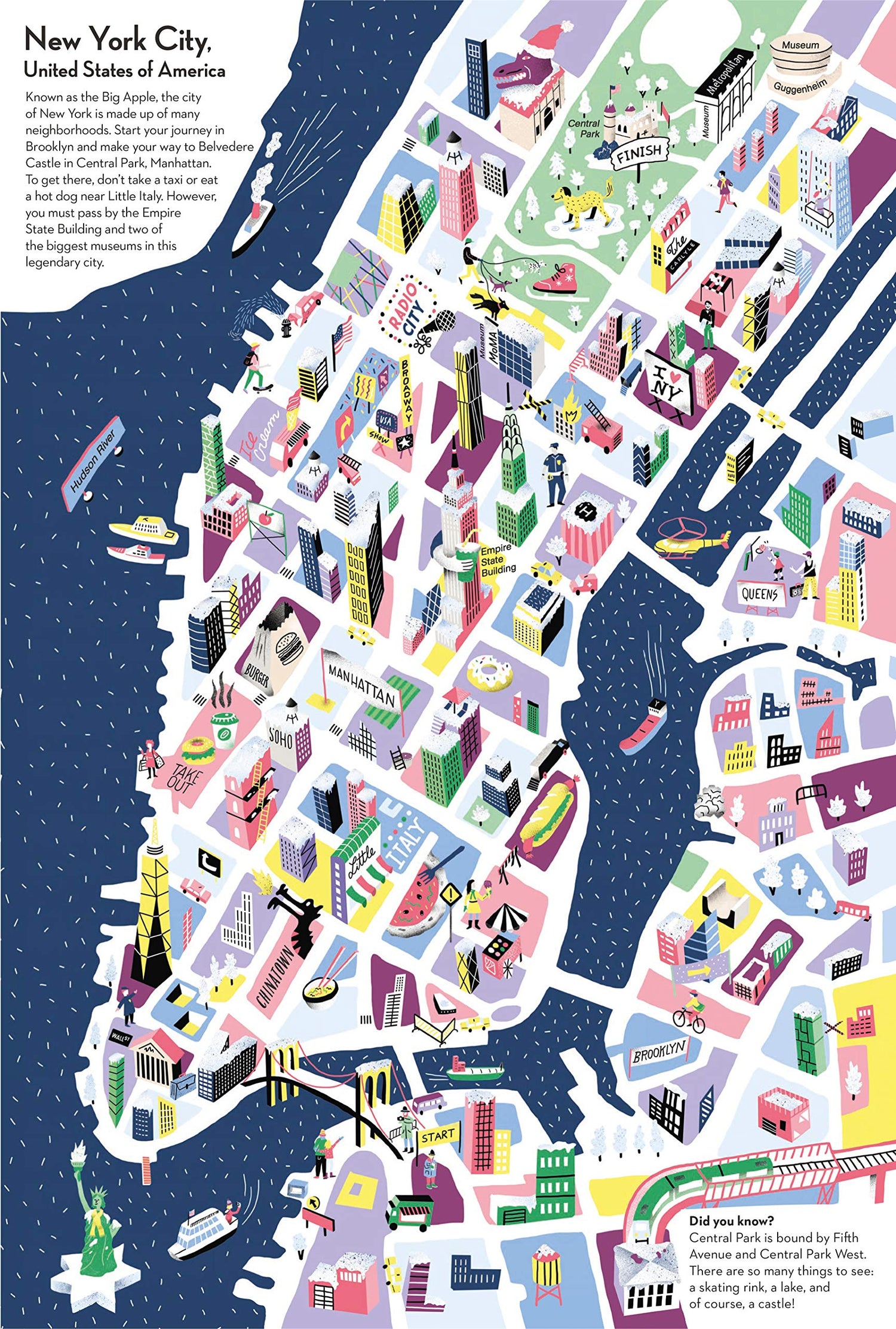 How will you get from the Brooklyn Bridge to Central Park in New York City? Or find your way to Topkapi Palace in Istanbul? Each spread is an engaging and challenging journey, and maze solvers have to look out for things or people that block their paths, like manga in Kyoto, dog walkers in San Francisco, and even bobbies in London!
