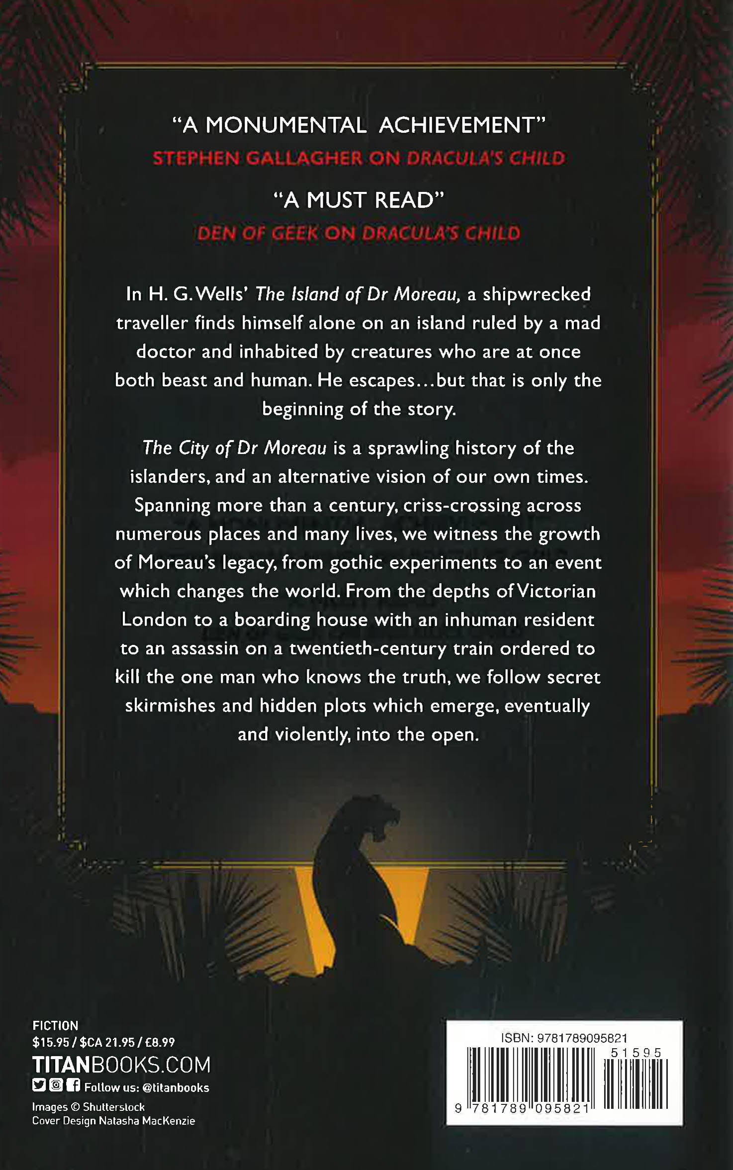 The City of Dr Moreau is a sprawling history of the islanders, and an alternative vision of our own times. Spanning more than a century, criss-crossing across numerous places and many lives, we witness the growth of Moreau’s legacy, from gothic experiments to an event which changes the world. From the depths of Victorian London to a boarding house with an inhuman resident to an assassin on a twentieth-century train ordered to kill the one man who knows the truth, we follow secret skirmishes and hidden plots which emerge, eventually and violently, into the open.
