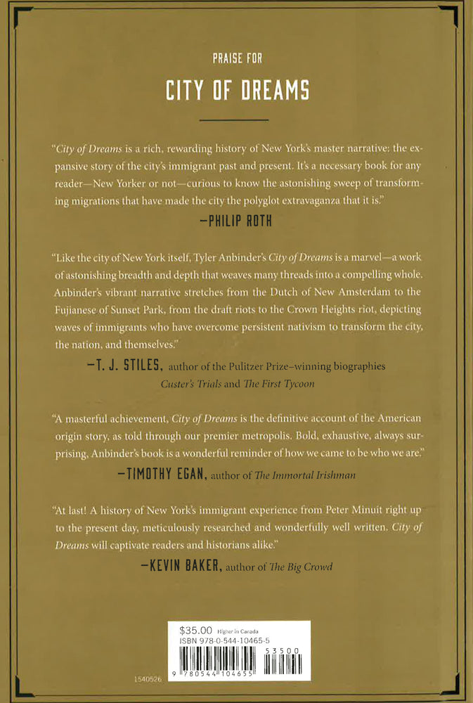 With more than three million foreign-born residents today, New York has been America's defining port of entry for nearly four centuries, a magnet for transplants from all over the globe. These migrants have brought their hundreds of languages and distinct cultures to the city, and from there to the entire country. More immigrants have come to j New York than all other entry points combined. City of Dreams is peopled with memorable characters both beloved and unfamiliar, whose lives unfold in rich detail the young man from the Caribbean who passed through New York on his way to becoming a Founding Father; the ten-year-old Angelo Siciliano, from Calabria, who transformed into Charles Atlas, bodybuilder; Dominican-born Oscar de la Renta, whose couture designs have dressed first ladies from Jackie Kennedy to Michelle Obama. Tyler Anbinder's story is one of innovators and artists, revolutionaries and i rioters, staggering deprivation and soaring triumphs, all playing out against the powerful backdrop of New York City, at once ever-changing and profoundly, permanently itself. City of Dreams provides a vivid sense of what New York looked like, sounded like, smelled like, and felt like over the centuries of its development and maturation into the city we know today.