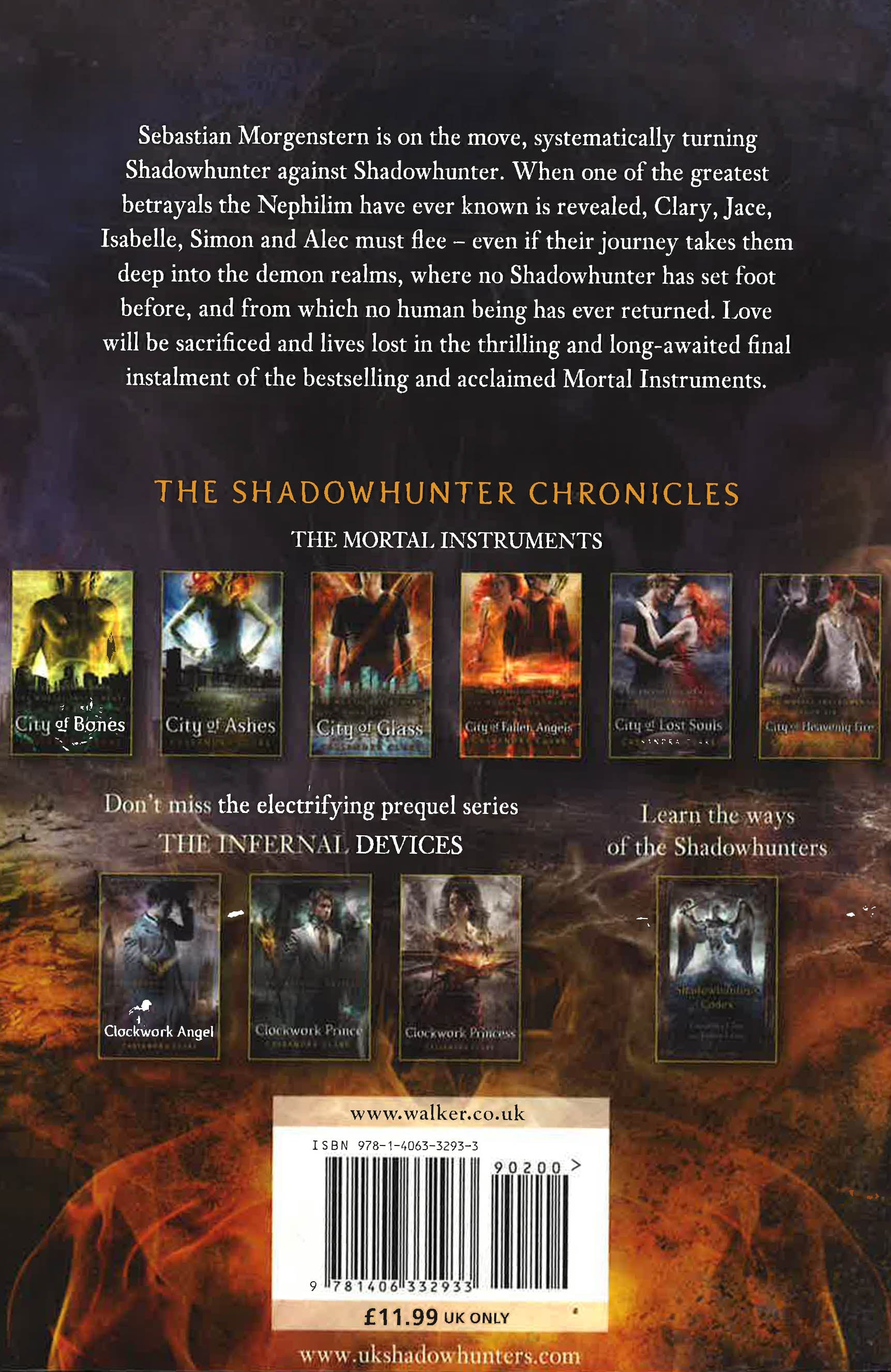 Darkness has descended on the Shadowhunter world. Chaos and destruction overwhelm the Nephilim as Clary, Jace, Simon, and their friends band together to fight the greatest evil they have ever faced: Clary's own brother. Nothing in this world can defeat Sebastian - but if they journey to the realm of demons, they just might have a chance - Lives will be lost, love sacrificed, and the whole world will change. Who will survive the explosive sixth and final instalment of the Mortal Instruments series? Love the series? Don't miss The Shadowhunter TV Series.