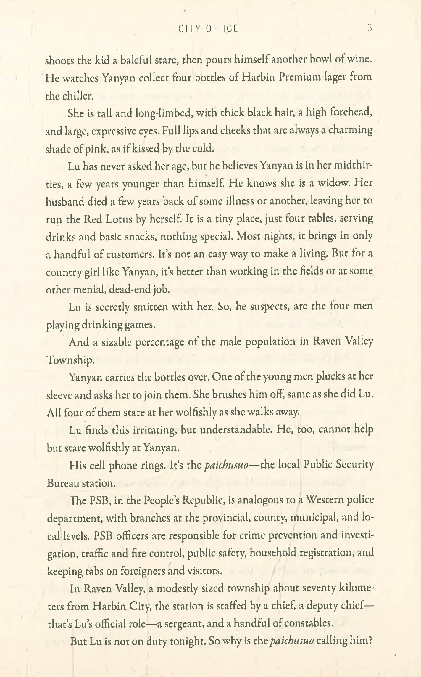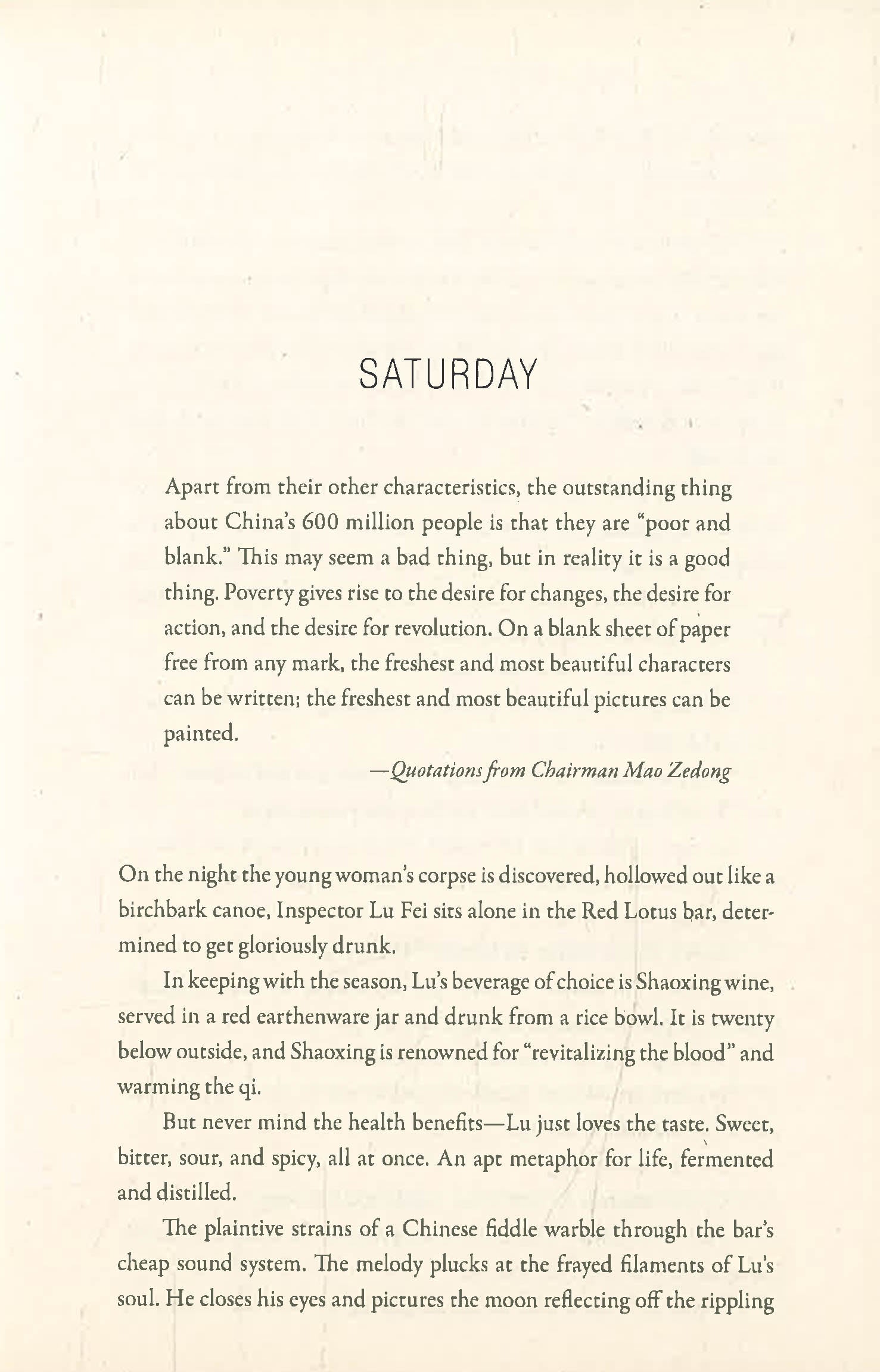 In a remote Chinese town - where the theft of a few chickens counts as a major crime - a young woman is found brutally murdered...with her heart, lungs and liver removed. Inspector Lu Fei, a weary cop who fled the city, suddenly finds himself under the intense scrutiny of the ruling party in Beijing.