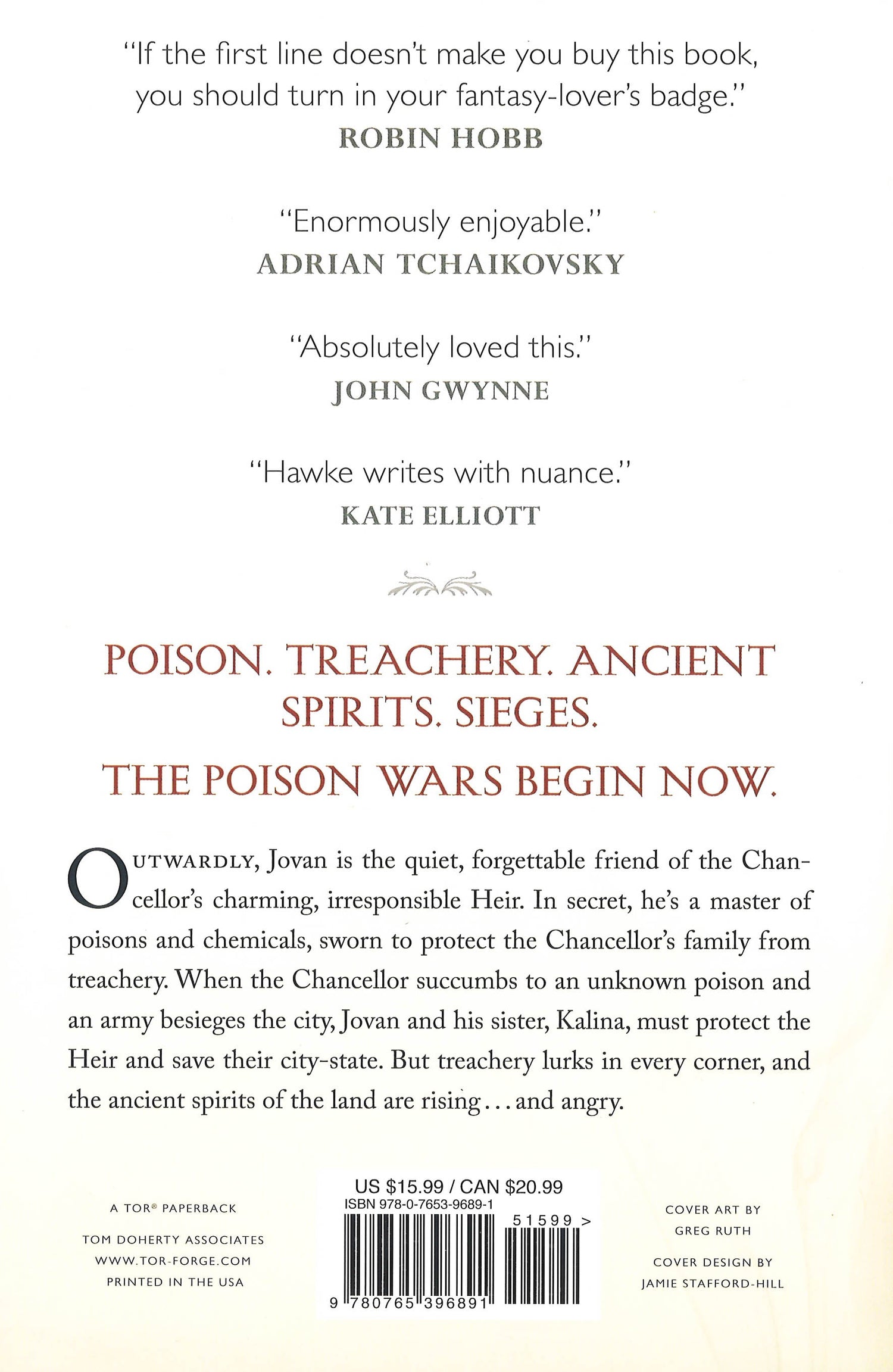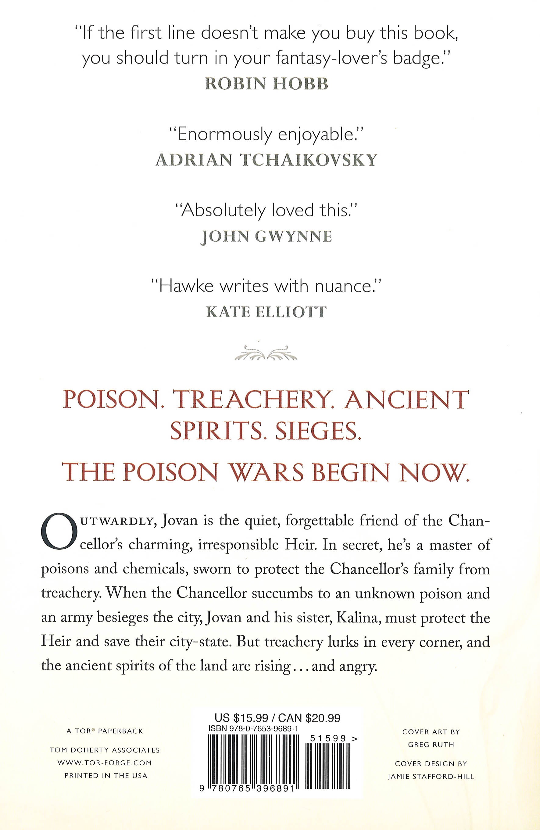Outwardly, Jovan is the lifelong friend of the Chancellor's charming, irresponsible Heir. Quiet. Forgettable. In secret, he's a master of poisons and chemicals, trained to protect the Chancellor's family from treachery. When the Chancellor succumbs to an unknown poison and an army lays siege to the city, Jovan and his sister Kalina must protect the Heir and save their city-state.