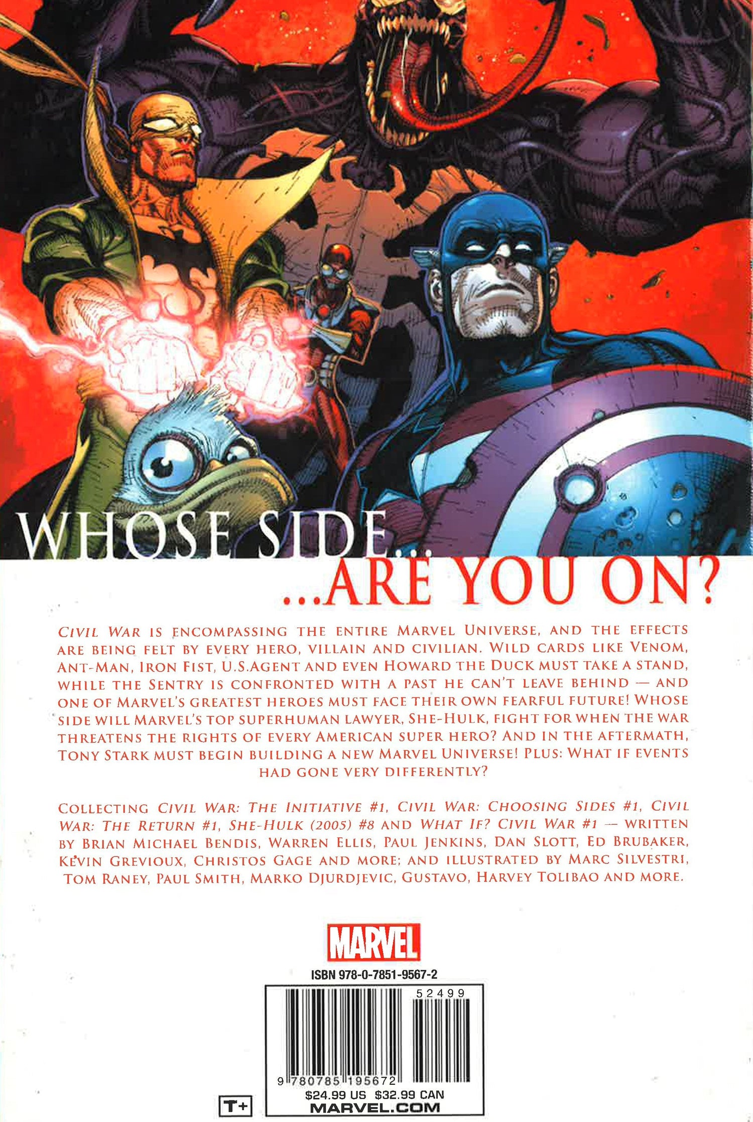 Whose side are you on? Civil War is encompassing the entire Marvel Universe, and the effects of the war are being felt by every hero, villain and civilian. Wild cards like Venom, Ant-Man, Iron Fist, U.S. Agent and even Howard the Duck must take a stand, while the Sentry is confronted with a past he can't leave behind - and one of Marvel's greatest heroes must face their own fearful future! Whose side will Marvel's top superhuman lawyer, She-Hulk, fi ght for, when the Civil War threatens the rights of every American super hero? *This book may have a remainder mark*