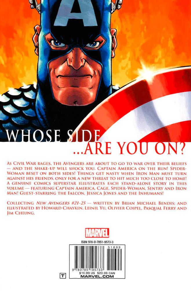 Civil War has erupted across the Marvel Universe, and no team will be more affected than the New Avengers. The Team's individual members grapple with issues of loyalty, trust, ethics and integrity as the team splits right down the middle! Captain America goes underground, Iron Man goes establishment, and both men become targets! Will Luke Cage stand by his beliefs or his family? Conflicted and compromised, where do Spider-Woman's true loyalties lie? And can the Sentry reconcile his past and his future? Which side will each of the new Avengers choose, and what will that choice cost them? The super-hero Civil War is poised to tear Earth's Mightiest heroes apart--and the shake-ups will shock you! Each standalone story in this volume is illustrated by a genuine comics superstar! COLLECTING: New Avengers (2005) #21-25 *This book may have remainder mark.