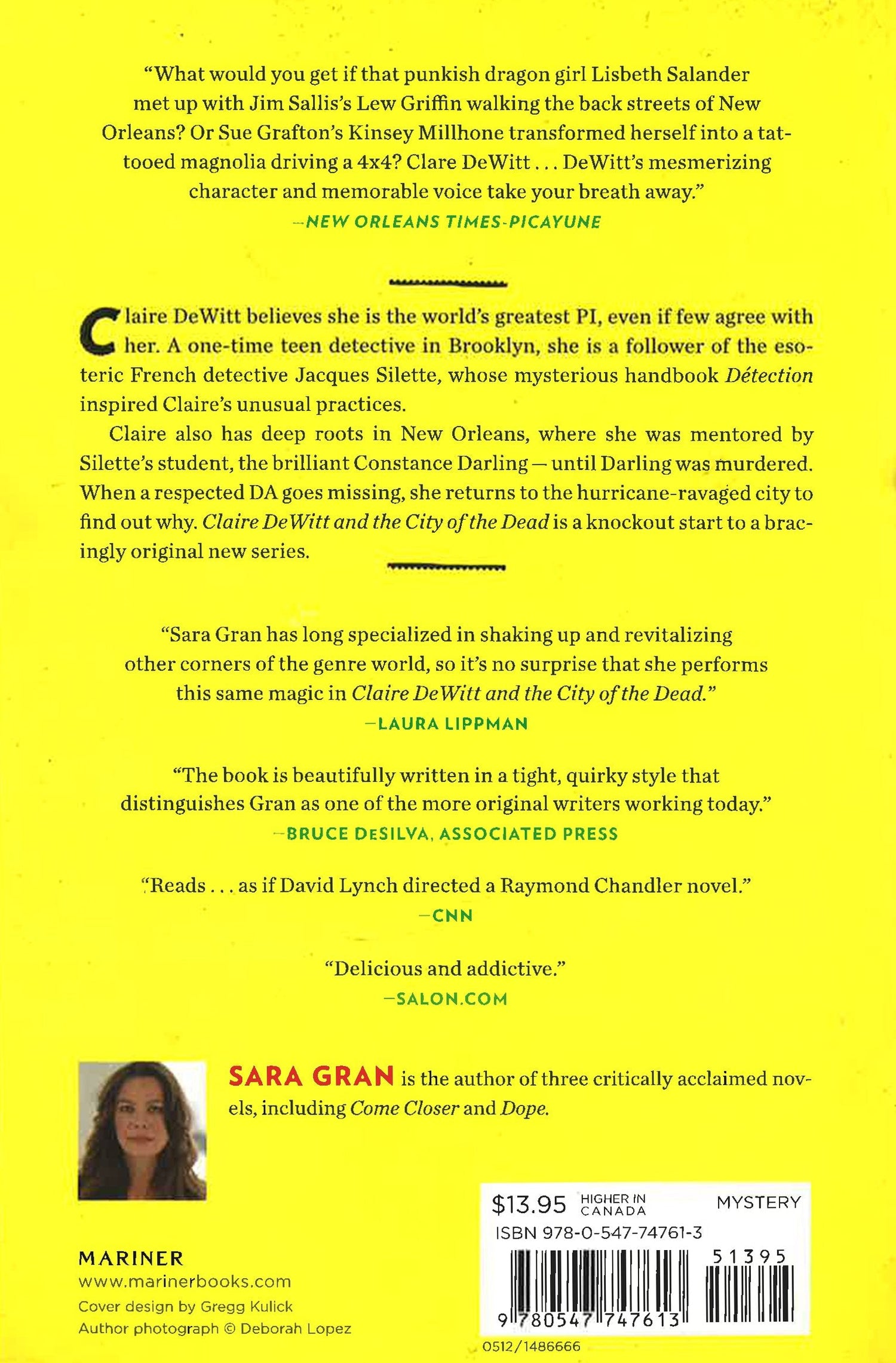 Claire DeWitt believes she is the world?s greatest PI, even if few agree with her. A one-time teen detective in Brooklyn, she is a follower of the esoteric French detective Jacques Silette, whose mysterious handbook D?tection inspired Claire's unusual practices. Claire also has deep roots in New Orleans, where she was mentored by Silette's student - the brilliant Constance Darling - until Darling was murdered. When a respected DA goes missing she returns to the hurricane-ravaged city to find out why. Claire DeWitt and the City of the Dead is a knockout start to a bracingly original new series.