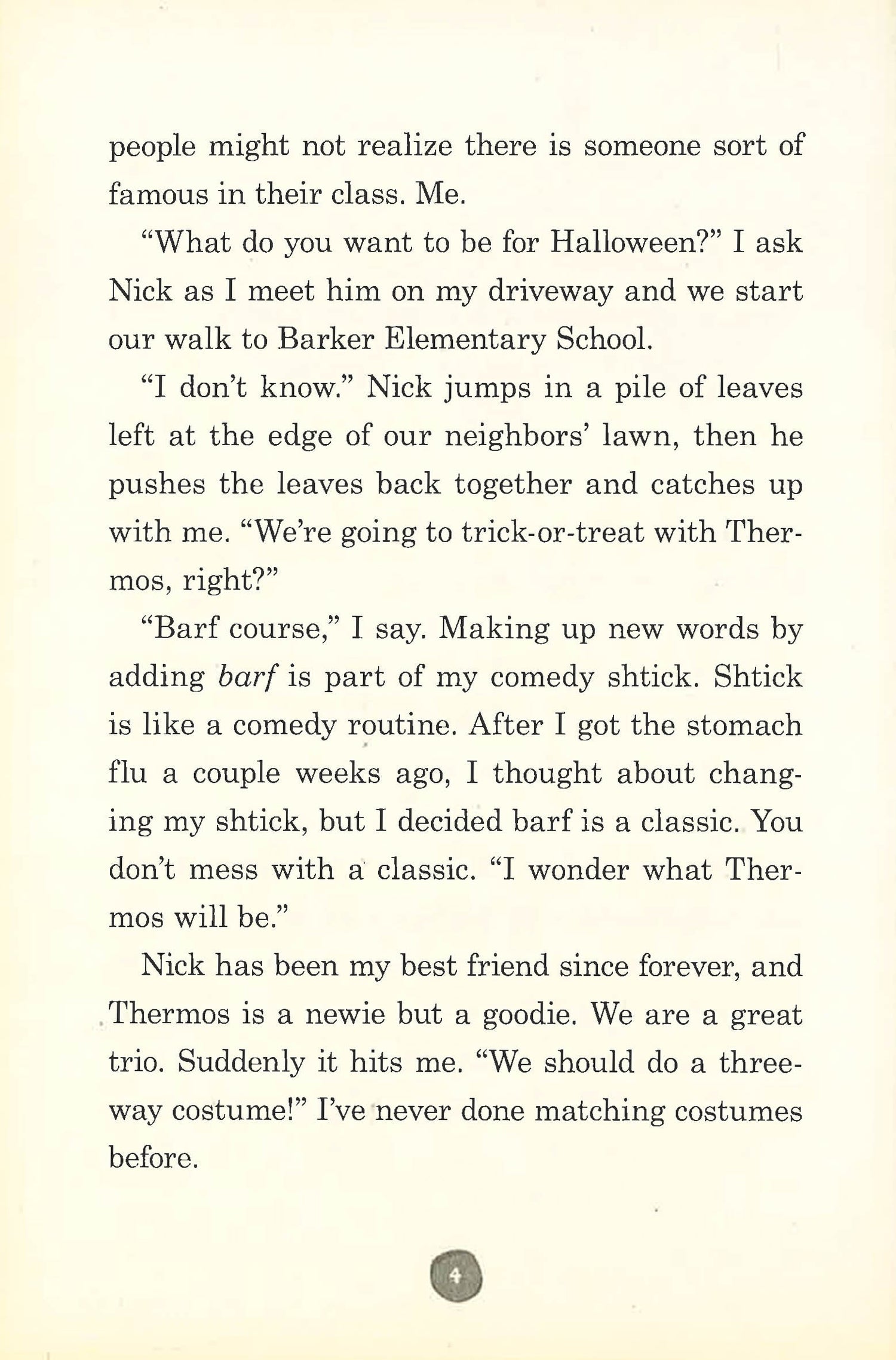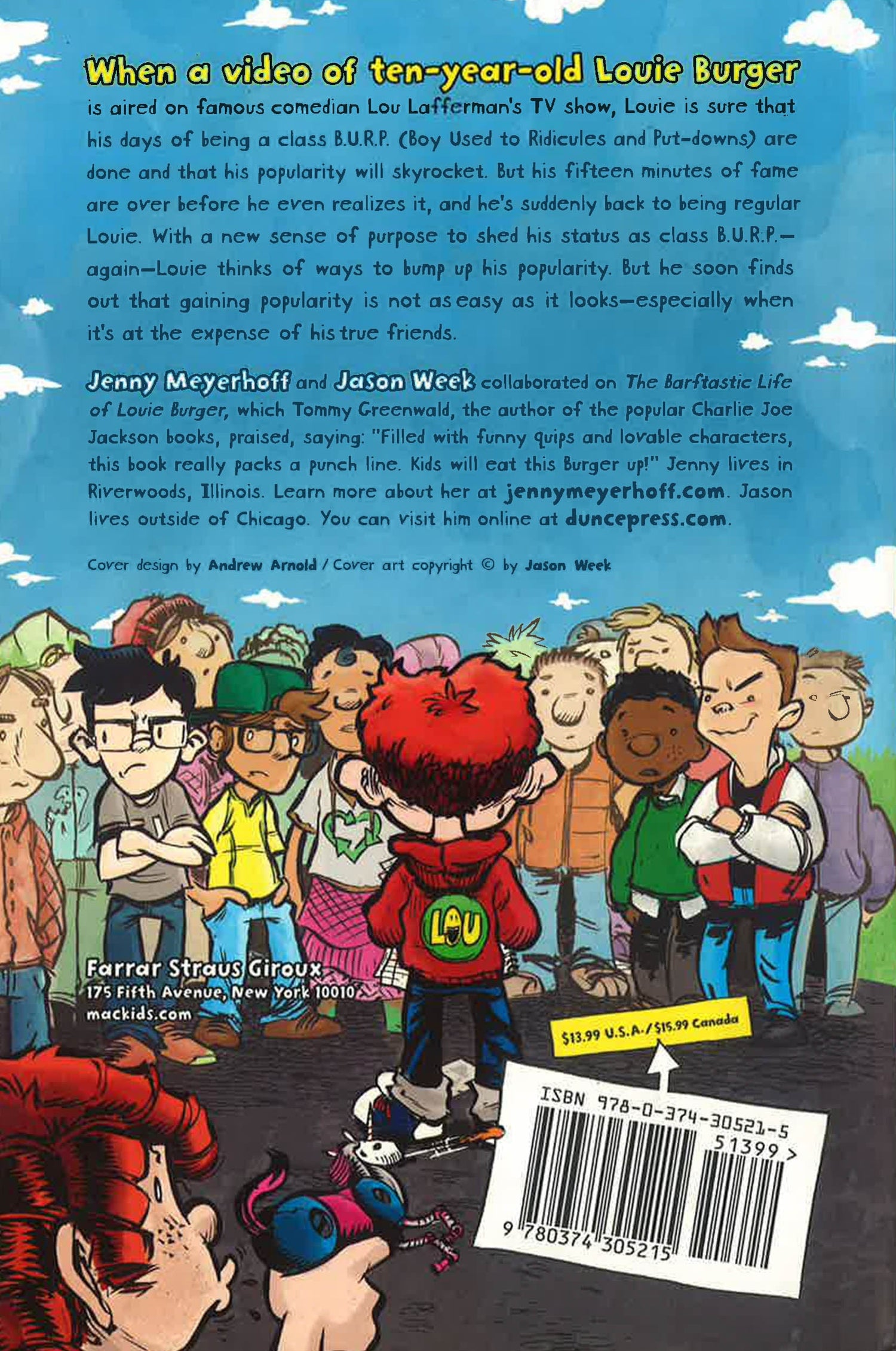 When a video of ten-year-old Louie Burger is aired on famous comedian Lou Lafferman's TV show, Louie is sure that his days of being a class B.U.R.P. (Boy Used to Ridicule and Put-downs) are gone and that his popularity will skyrocket. But his fifteen minutes of fame are over before he even realizes it, and he's suddenly back to being regular Louie. He tries to come up with ways to bump up his popularity, such as having the best Halloween costume. But Louie soon learns that in the end, friendship is more important than popularity anyway. This sequel to The Barftastic Life of Louie Burger, with its fun boy humor and copious line art (fifty illustrations!), is sure to satisfy.