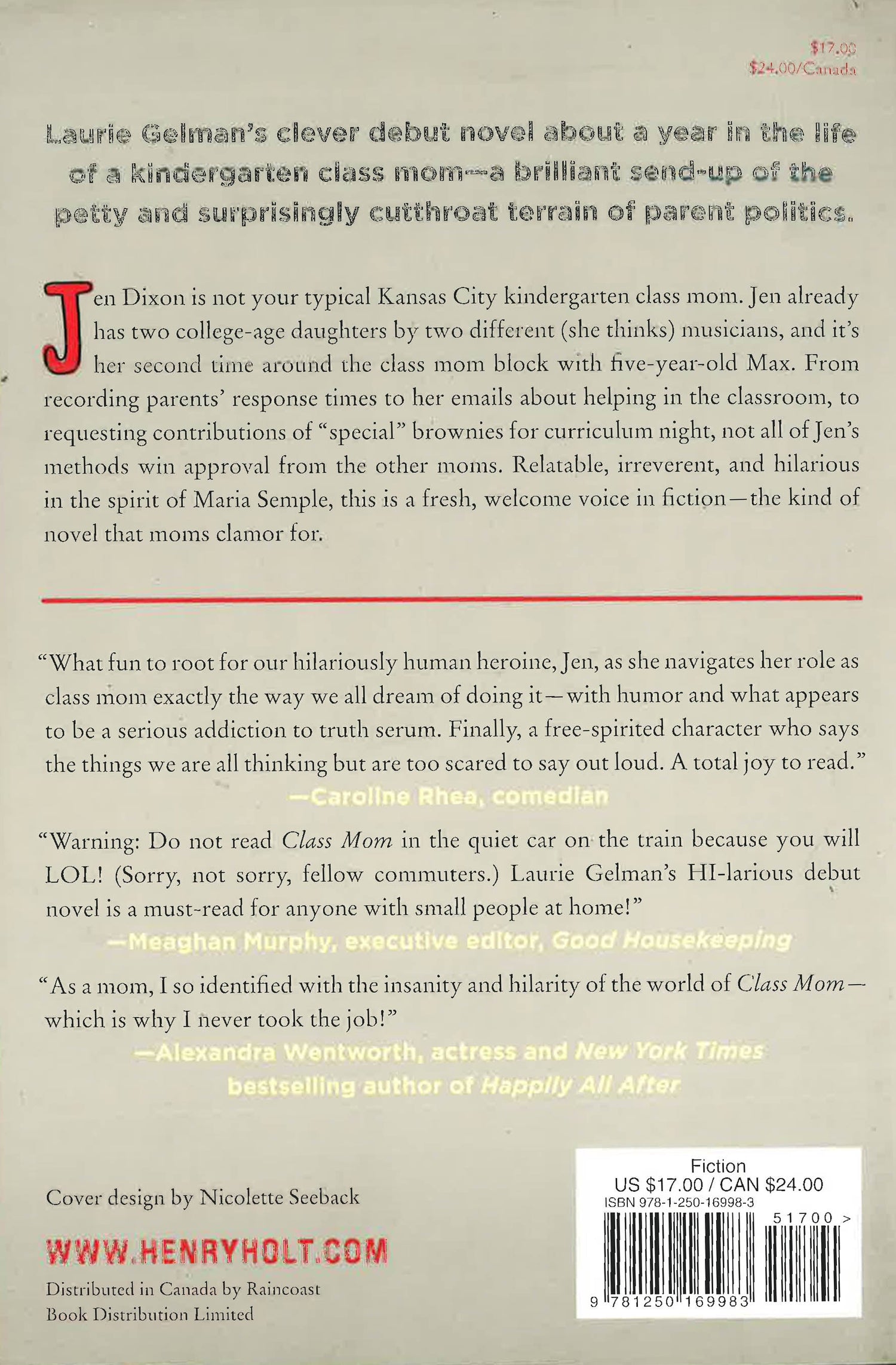 Jen Dixon is not your typical Kansas City kindergarten class mom. Jen already has two college-age daughters by two different (she thinks) musicians, and it's her second time around the class mom block with five-year-old Max. From recording parents' response times to her emails about helping in the classroom, to requesting contributions of "special" brownies for curriculum night, not all of Jen's methods win approval from the other moms. Relatable, irreverent, and hilarious, this is a fresh, welcome voice in fiction - the kind of novel that moms clamor for
