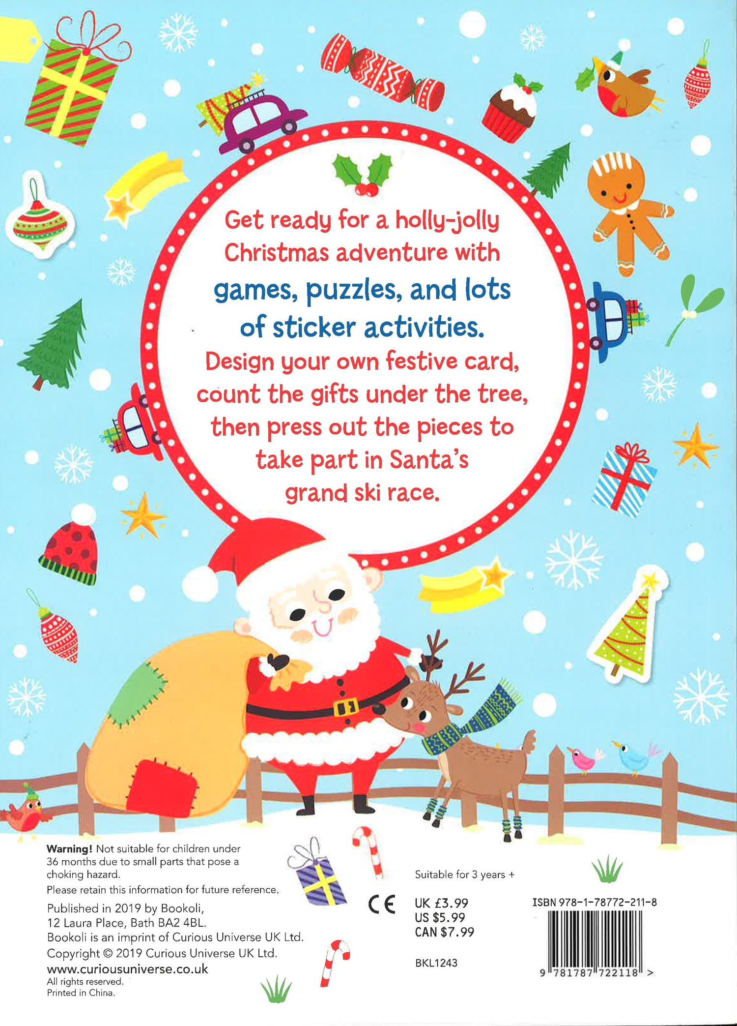 Get ready for a holly-jolly Christmas adventure with games, puzzles, and lots of sticker activities. Design your own festive card, count the gifts under the tree, then press out the pieces to take part in Santa’s grand ski race. The bright, bold illustrations are full of character and bring the Christmas theme to life, and with over 300 colourful stickers and festive press-out pieces this book will encourage imaginative play and craft.