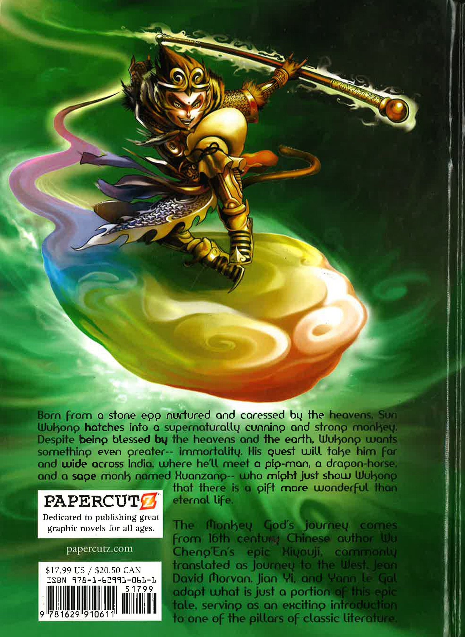 Excerpted from "Journey to the West," one of the Four Great Classic Novels in Chinese literature, comes the supernatural adventure story of the Monkey God. 500 years after being imprisoned by the Buddha, Sun Wukong, the Monkey God, has been freed. The Bodhisattva Guanyin is on a pilgrimage from China to India to retrieve an ancient Buddhist text, and has enlisted Sun Wukong to protect him on his journey in exchange for his freedom. Guanyin's safety on the journey will be under constant threat from bandits, demons, and other supernatural beings. The Monkey God will be difficult to control- he was imprisoned for rebelling against gods and emperors. How will Guanyin be able to make the Monkey God deliver his side of their agreement? And will the two be able to complete their journey to the West?