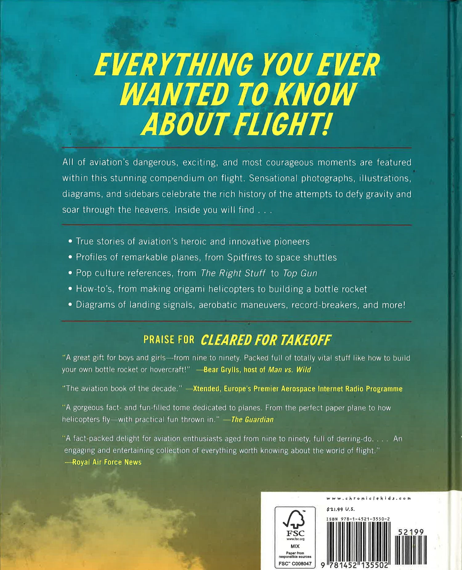 All of aviation's dangerous, exciting, and most courageous moments are featured within this stunning compendium on flight. Packed with stories of heroic and innovative pioneers, fascinating profiles of remarkable planes from Spitfires to space shuttles, and how-to instructions for making everything from origami helicopters to bottle rockets--all accompanied by sensational photographs, illustrations, and diagrams--Cleared for Takeoff promises to astonish, entertain, and fire the imaginations of everyone with their head in the clouds.