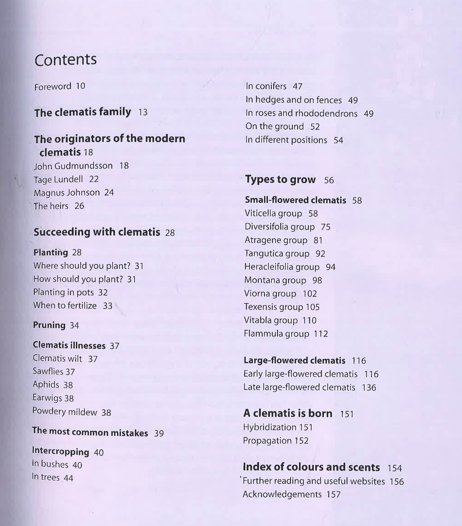 Here are over 100 varieties of clematis presented in words and pictures, including both large and small flowering varieties, climbing clematis and upright-growing types. Useful suggestions as to which varieties are good to grow against a trellis or doorway, as a climber in trees and bushes, in a flowerbed or even as ground cover will help you to choose which clematis is right for your garden. There is also an exciting historical overview of the clematis and plenty of advice covering everything from how and when to prune to tips on how to avoid the most common mistakes and what to do if problems occur. Whether you are an experienced clematis grower seeking inspiration for future plantings or a total beginner looking for a simple guide to growing these magnificent flowers, this book has everything you need to know to grow beautiful clematis year after year. It is suitable for keen gardeners looking to increase their knowledge of clematis cultivation and beginners seeking a comprehensive guide to growing clematis.