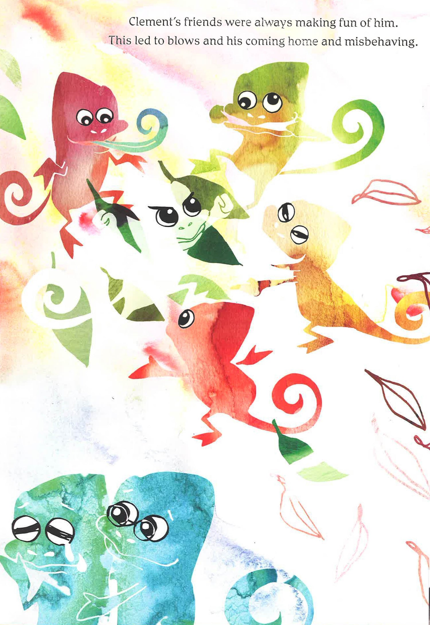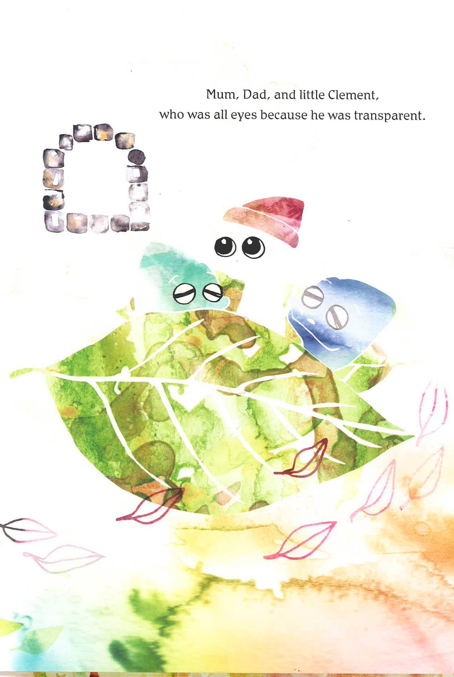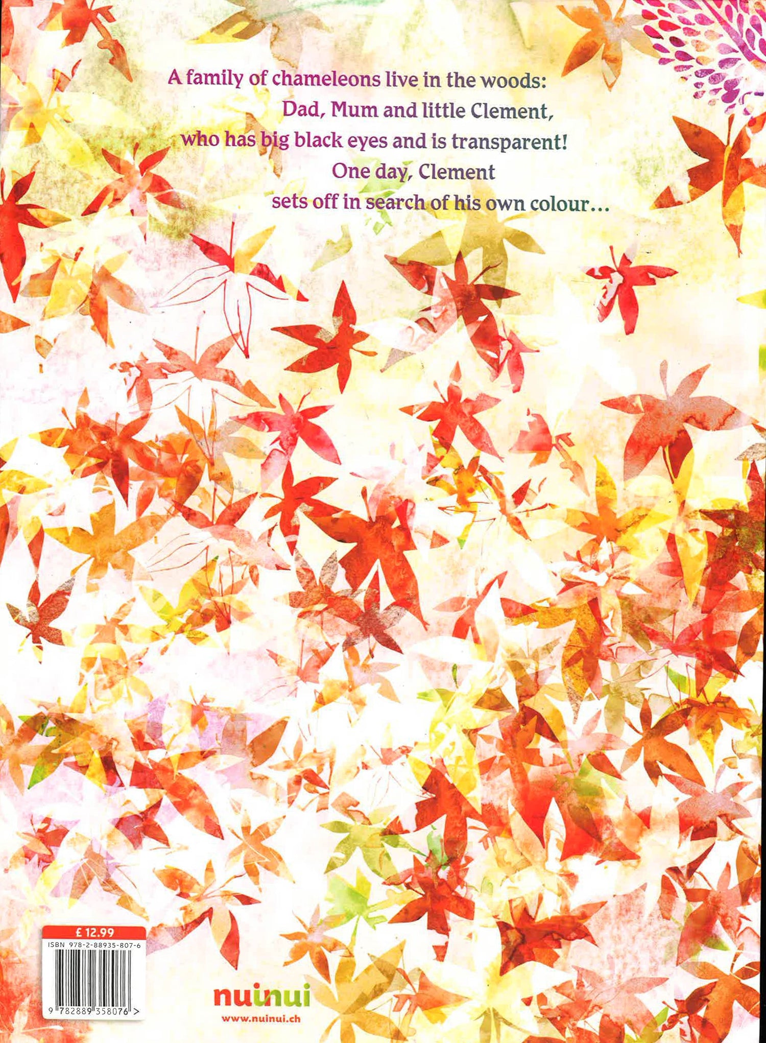 A family of chameleons live in the wood: dad, mum and little Clement, who is colourless. He is transparent; all you can see are his big black eyes! One day he sets off in search of the perfect colour. To begin with, he's glad to be free and tries all the colours of the rainbow, but soon he begins to feel lonesome and becomes homesick for his mum and dad. Was his journey in search of identity useful? You'll find out by reading the story that is illustrated with fresh and original drawings, a true poem in images.?