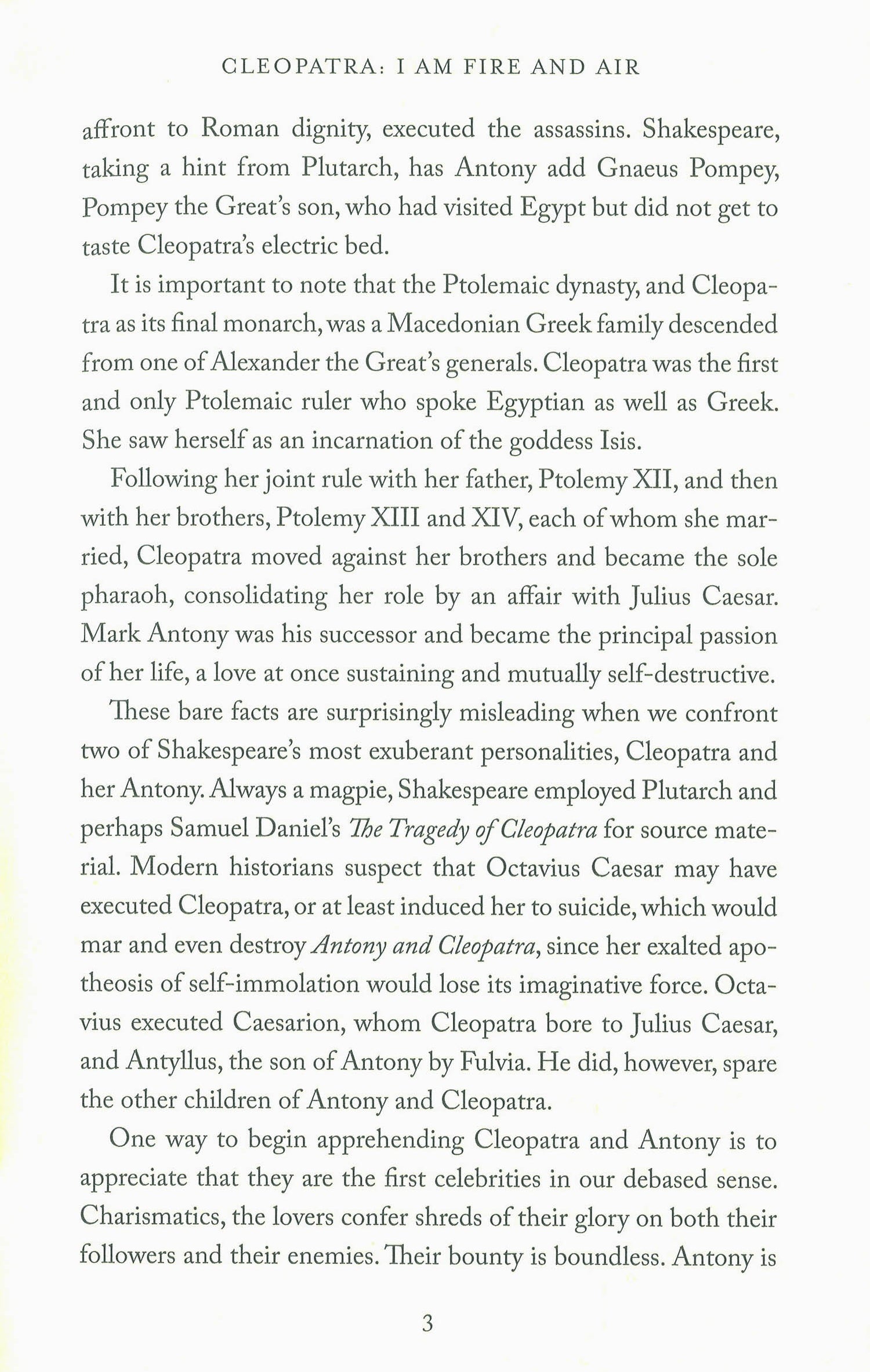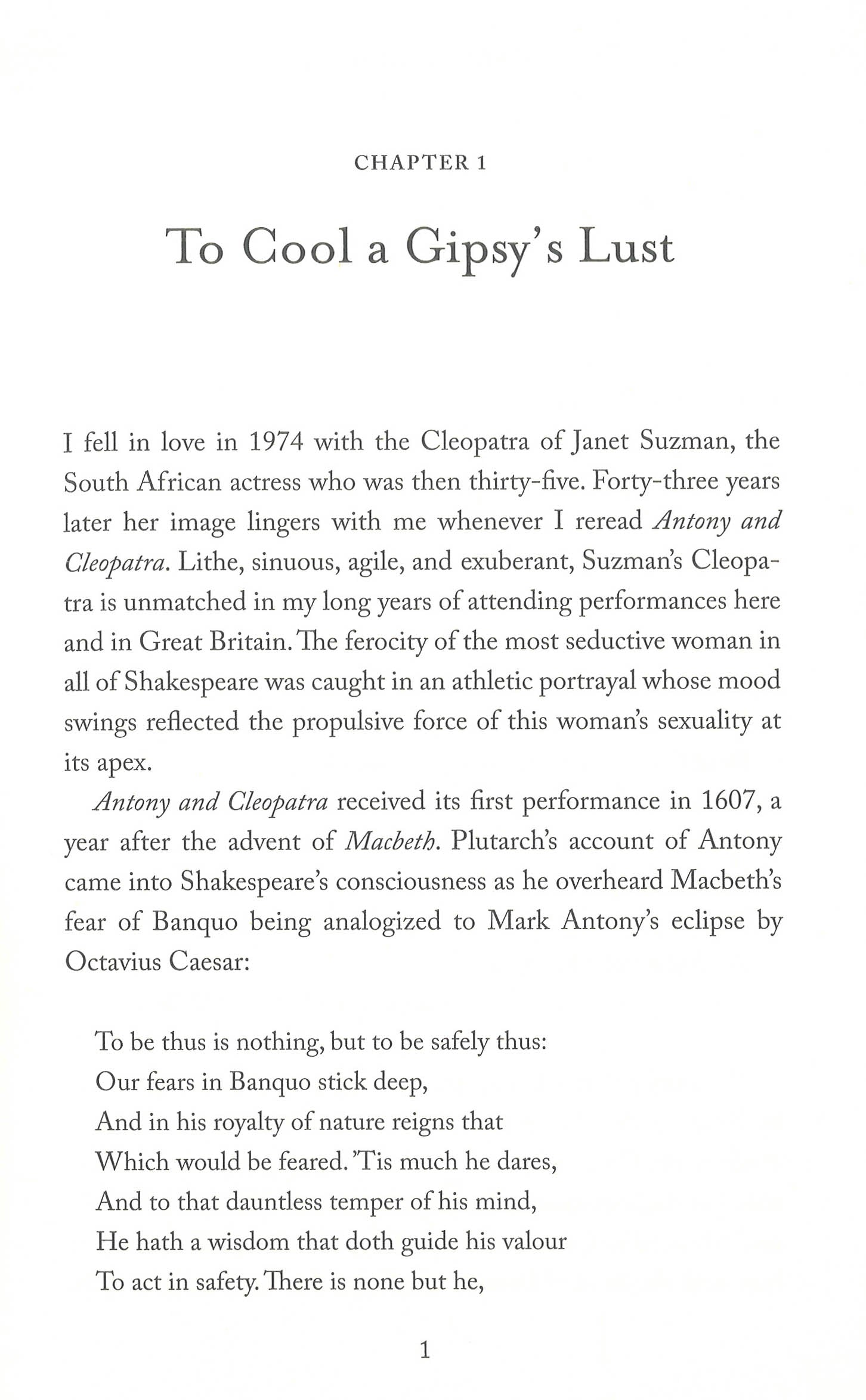 From Harold Bloom, one of the greatest Shakespeare scholars of our time, comes an intimate, wise, deeply compelling portrait of Cleopatra-one of the Bard's most riveting and memorable female characters. Cleopatra is one of the most famous women in history-and thanks to Shakespeare, one of the most intriguing personalities in literature. She is lover of Marc Antony, defender of Egypt, and, perhaps most enduringly, a champion of life. Cleopatra is supremely vexing, tragic, and complex. She has fascinated readers and audiences for centuries and has been played by the greatest actresses of their time, from Elizabeth Taylor to Vivien Leigh to Janet Suzman to Judi Dench. Award-winning writer and beloved professor Harold Bloom writes about Cleopatra with wisdom, joy, exuberance, and compassion. He also explores his own personal relationship to the character: Just as we encounter one Anna Karenina or Jay Gatsby when we are in high school and college and another when we are adults, Bloom explains his shifting understanding of Cleopatra over the course of his own lifetime. The book becomes an extraordinarily moving argument for literature as a path to and a measure of our own humanity. Bloom is mesmerizing in the classroom, wrestling with the often tragic choices Shakespeare's characters make. With Cleopatra, he delivers exhilarating clarity and invites us to look at this character as a flawed human who might be living in our world. The result is an invaluable resource from our greatest literary critic.