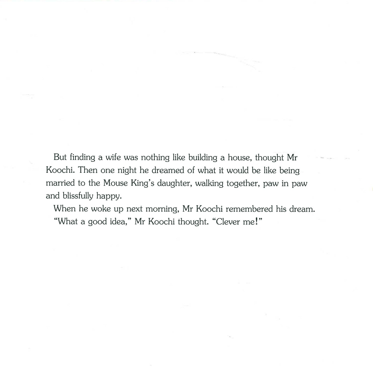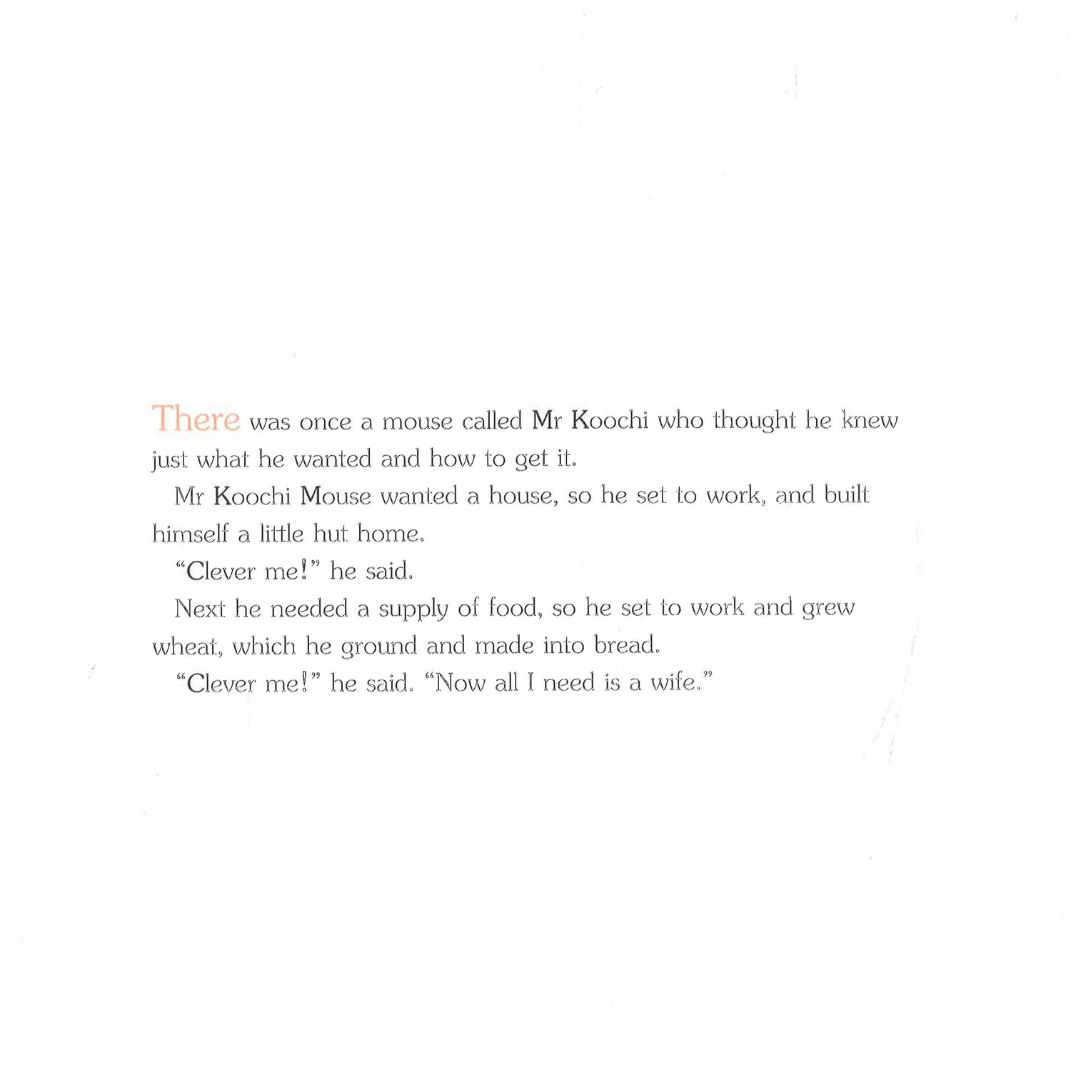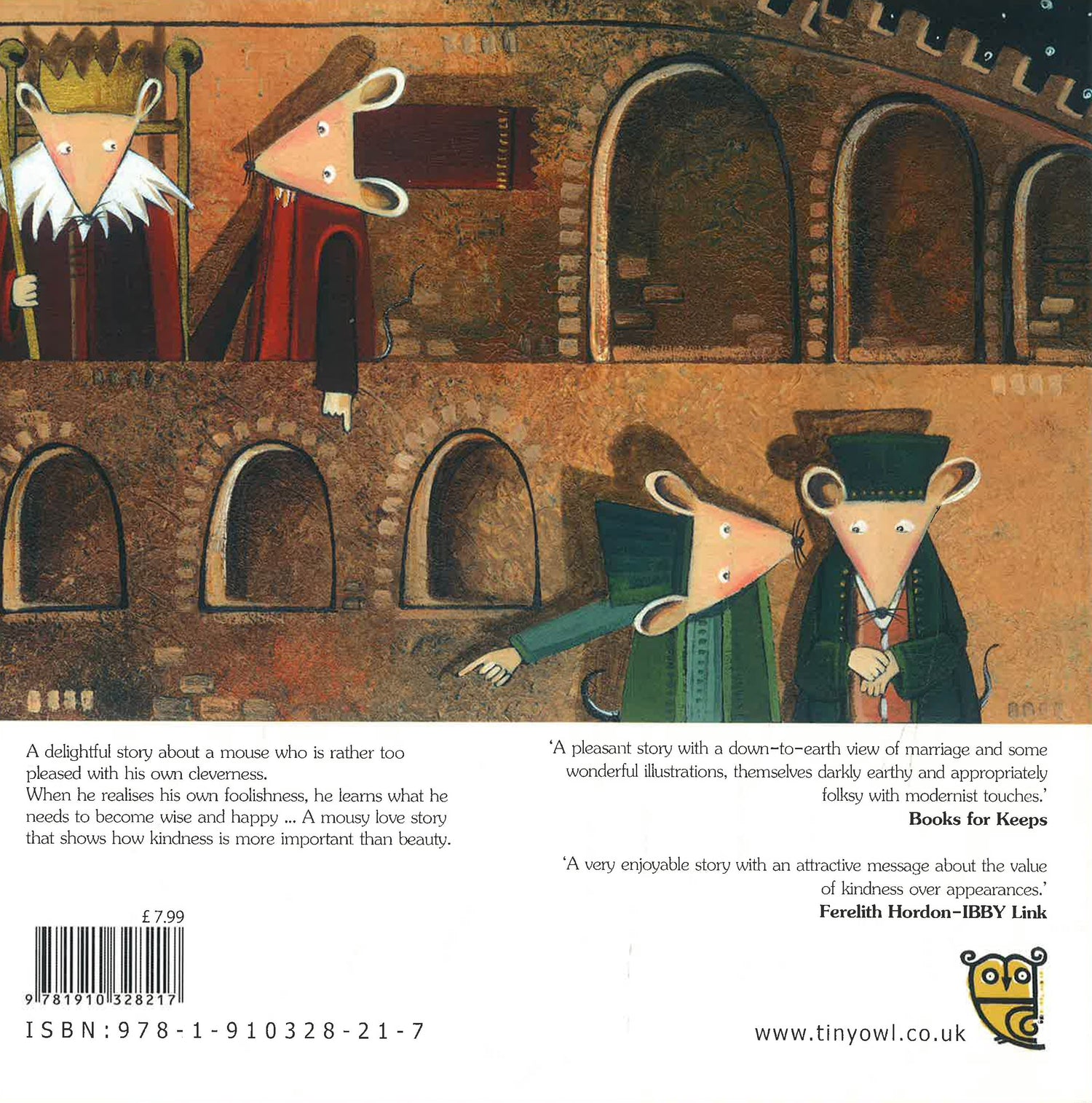 A delightful story about a mouse who is rather too pleased with his own cleverness ...but a bit of realising his own foolishness teaches him what he needs to learn in order to become wise and happy. A mousy love story that shows how kindness is more important than beauty.