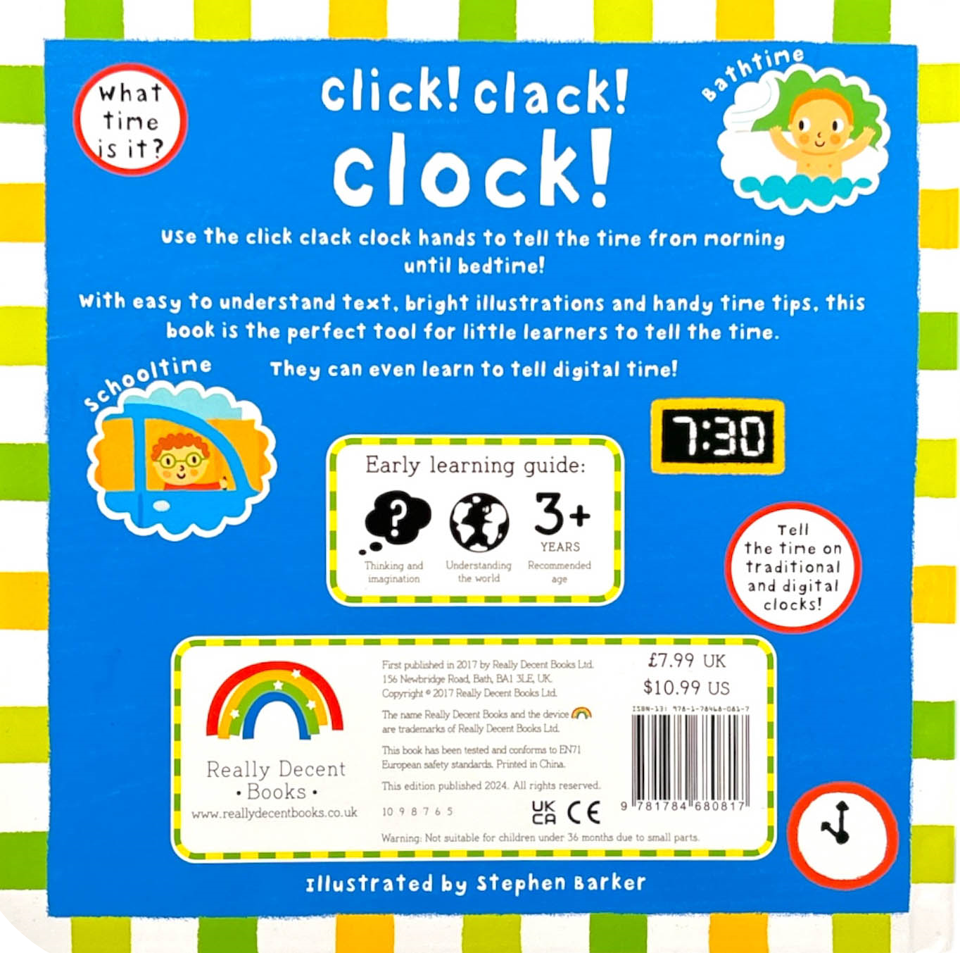 Use the click clack clock hands to tell the time from morning until bedtime! With easy to understand text, bright illustrations and handy time tips, this book is the perfect tool for Little Learners to tell the time. They can even learn to tell digital time!