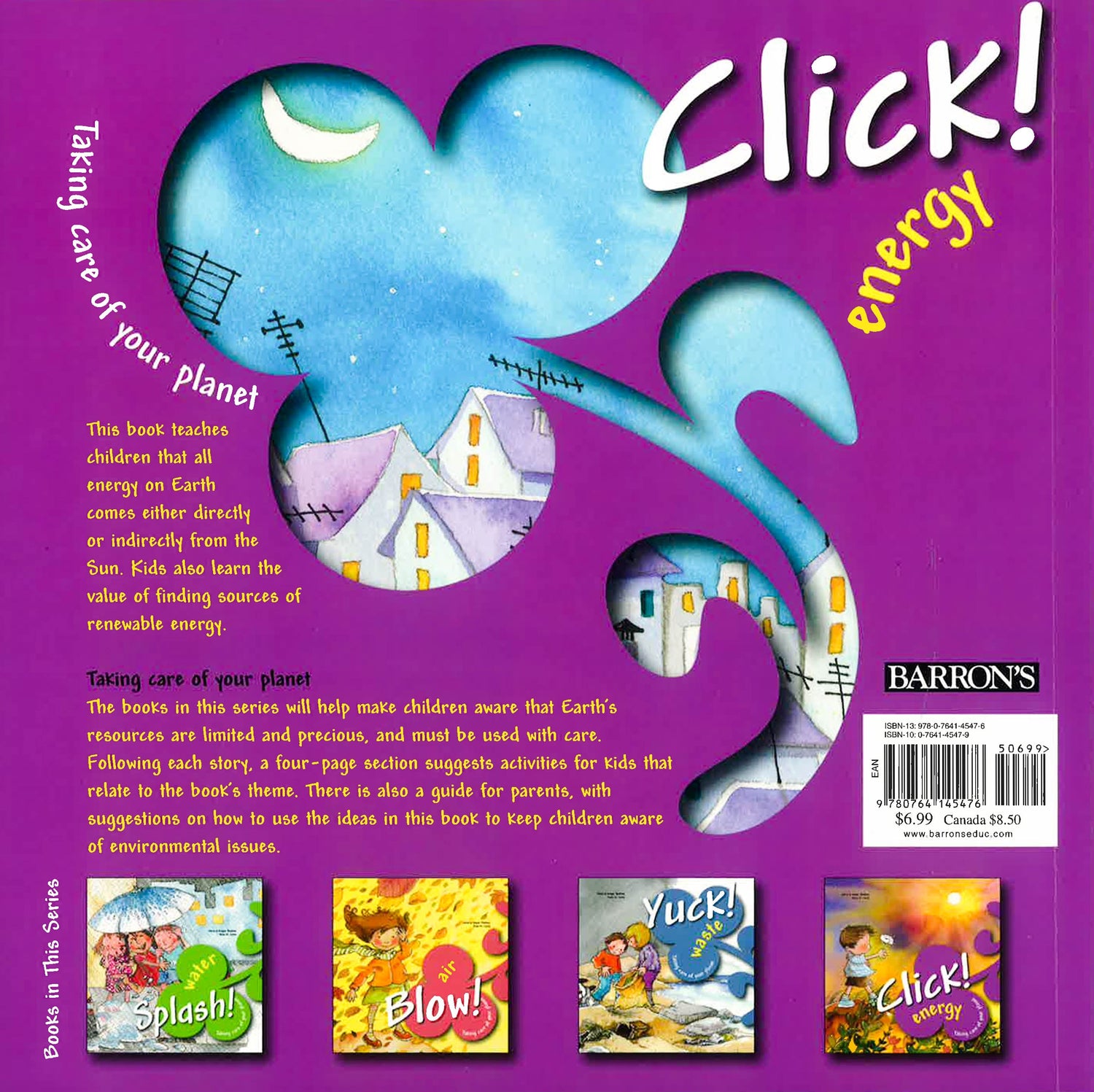 In this book, kids discover that all energy on Earth comes either directly or indirectly from the Sun. They also learn the value of finding sources of renewable energy. The brightly illustrated " Taking Care of Your Planet " books were written and designed to help make young children aware that Earth's resources are limited and precious, and must be used with care. Each book tells a story that centers around children and their parents, as together they learn the value of conserving Earth's natural resources to help keep the planet green. Following each story, a four-page section suggests children's activities that relate to the book's central theme. A final two-page spread offers a guide for parents, with suggestions on how to use the concepts in the book to keep children aware of environmental issues. Color illustrations on every page.