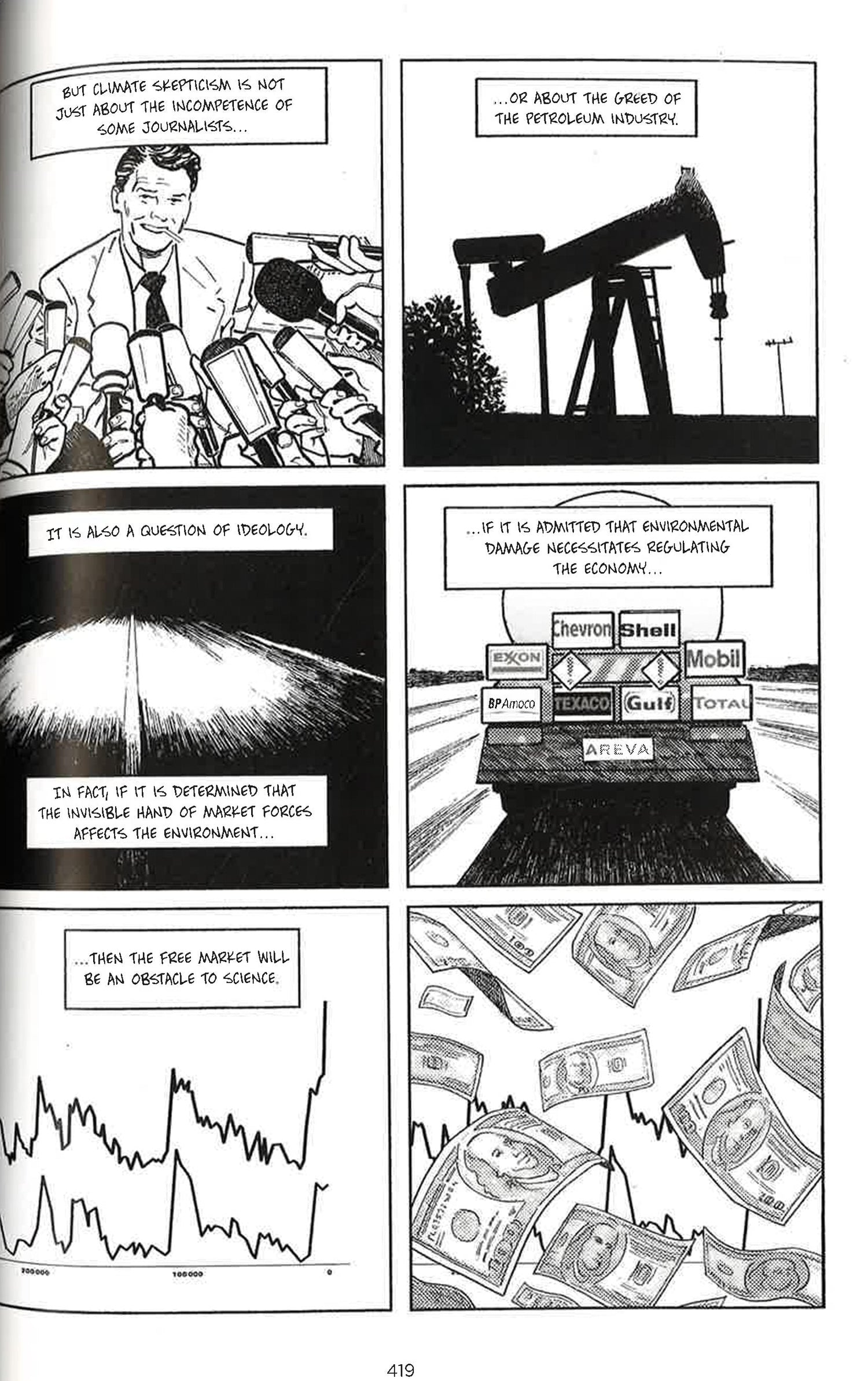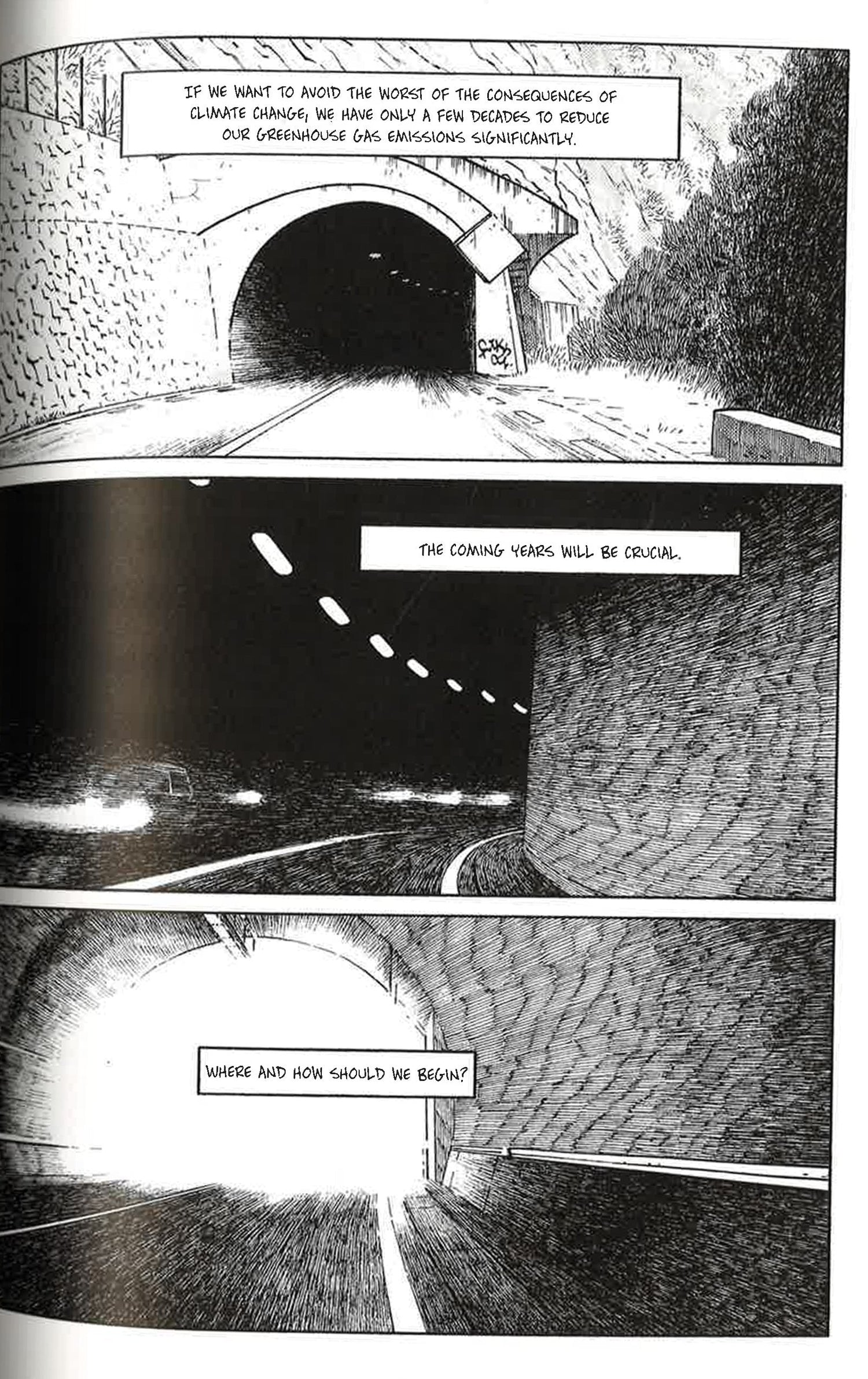 Based on the analysis of the Intergovernmental Panel on Climate Change (IPCC), but seen through the perspective of everyman journalist Philippe Squarzoni, this graphic novel explains how our environment functions; outlines the consequences of climate change and asks: is our society able to pursue a proactive policy in regard to ecological issues? In a tour de force of both artistic and informational presentation, with the impact of climate change on the US central to the narrative, Philippe Squarzoni weaves together scientific research, interviews with leading experts, personal reflections and a call for action starting at a grassroots level. One of the featured experts is Jean Jouzel, member of the IPCC (recipient with Al Gore of the 2007 Nobel Peace Prize), who praised the final book on its thorough research and understanding of the facts.