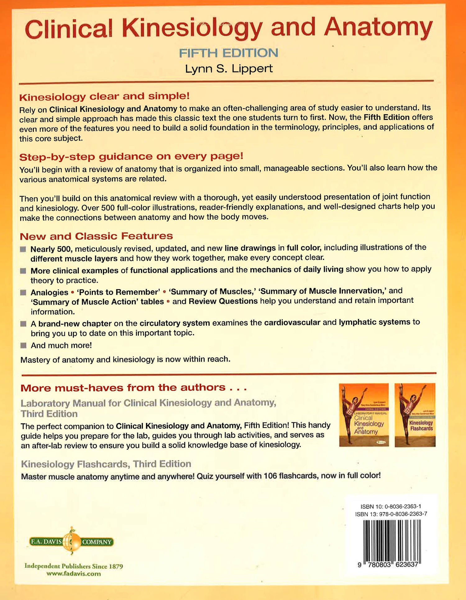 The 5th Edition of this classic kinesiology text continues the tradition of presenting a very complicated topic in a clear, simple, and easy-to-understand manner. Bite size sections and over 500 full color illustrations show how various anatomical systems are connected and help you identify and see the connection between common pathologies associated with certain anatomical structures.