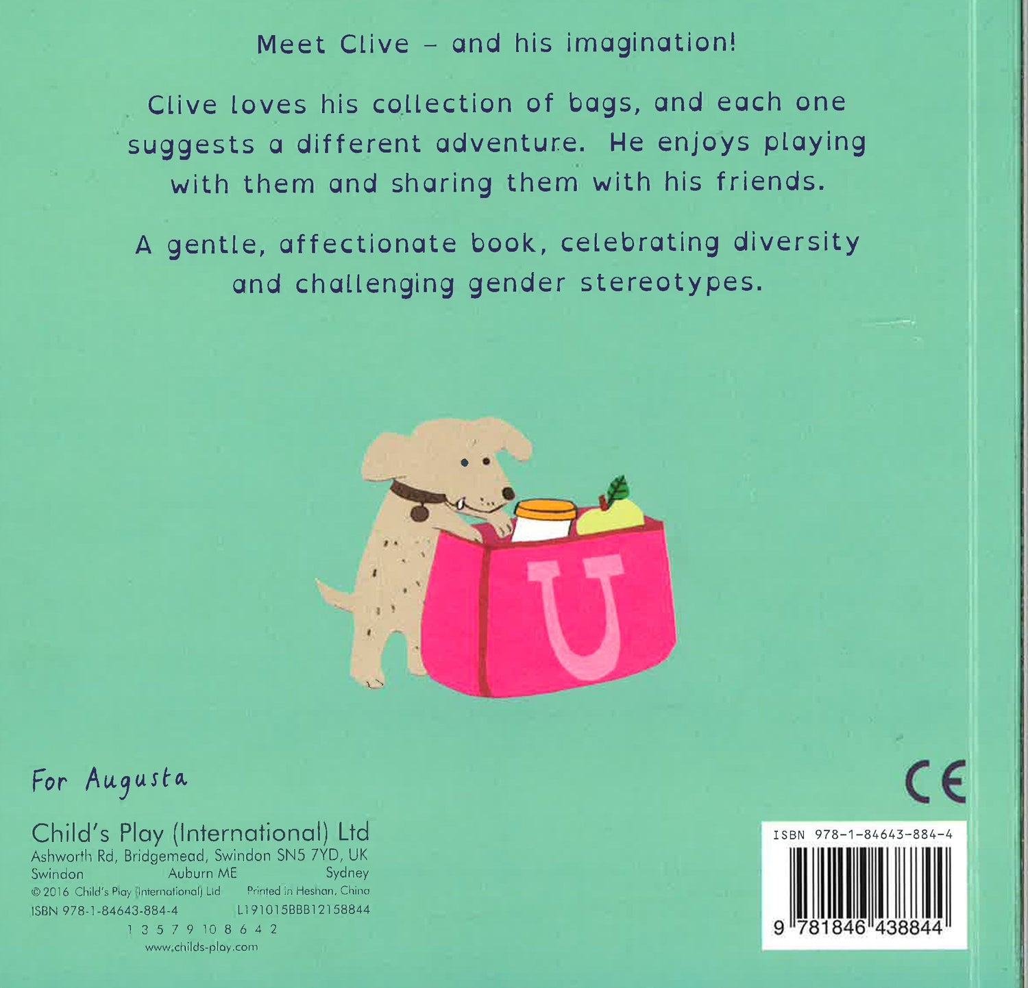 Meet Clive - and his imagination! Clive loves his collection of bags, and each one suggests a different adventure. He enjoys playing with them, and sharing them with his friends. A gentle, affectionate book, celebrating diversity and challenging gender stereotypes.
