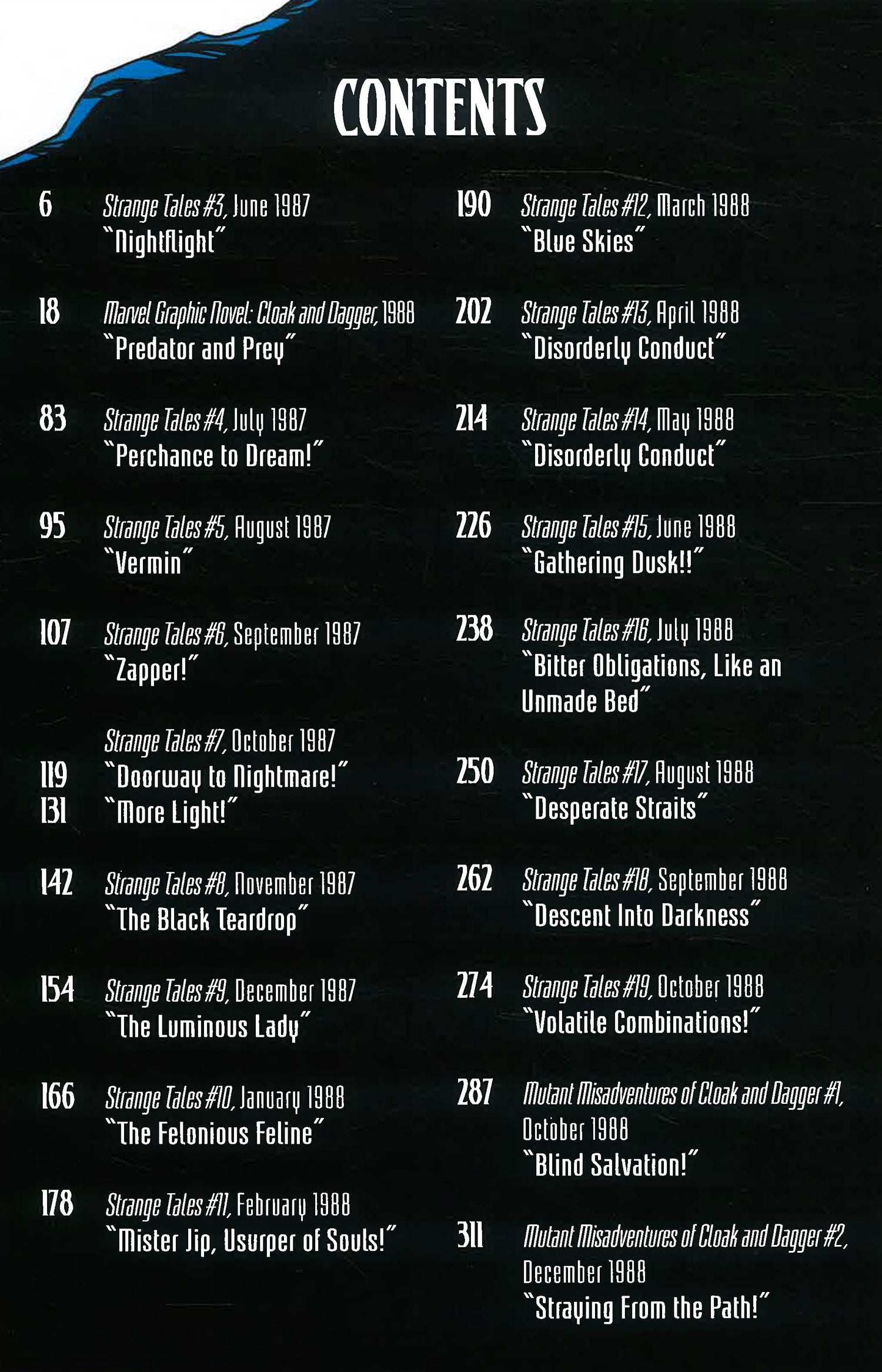 As Cloak discovers the hideous secret of his hunger for light, Nightmare seeks to use him to destroy Doctor Strange! Elsewhere, the horrific Mr. Jip unleashes his minions, Day and Night! Cloak and Dagger face the Punisher and Mayhem. But when Tandy is corrupted, can X-Factor help save her soul? Then, Dagger deals with the loss of her sight and the apparent death of her crimefighting partner - while the villainous Ecstasy wears Cloak's cloak! But rumors of Ty's death have been greatly exaggerated! Plus: Doctor Doom! Acts of Vengeance! Inferno! And Spider-Man and Ghost Rider join Cloak and Dagger for a final fight against Mephisto! Collecting MARVEL GRAPHIC NOVEL: CLOAK AND DAGGER - PREDATOR AND PREY, STRANGE TALES (1987) #7, MUTANT MISADVENTURES OF CLOAK AND DAGGER #1-13, CLOAK AND DAGGER (1990) #14-19, and material from STRANGE TALES (1987) #3-6 and #8-19.