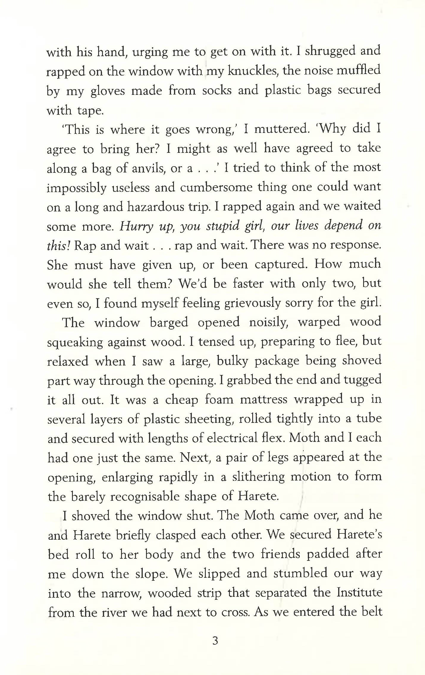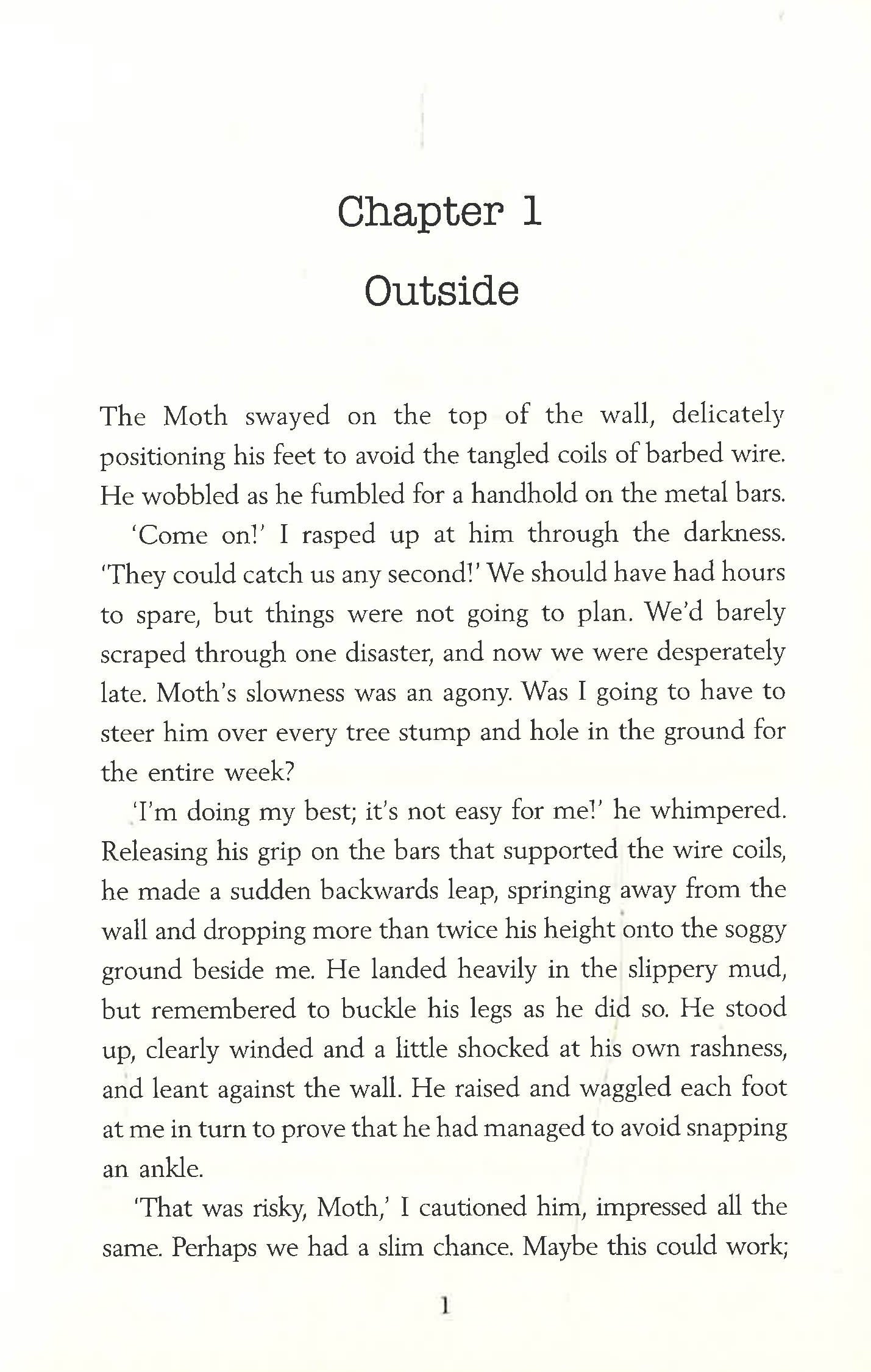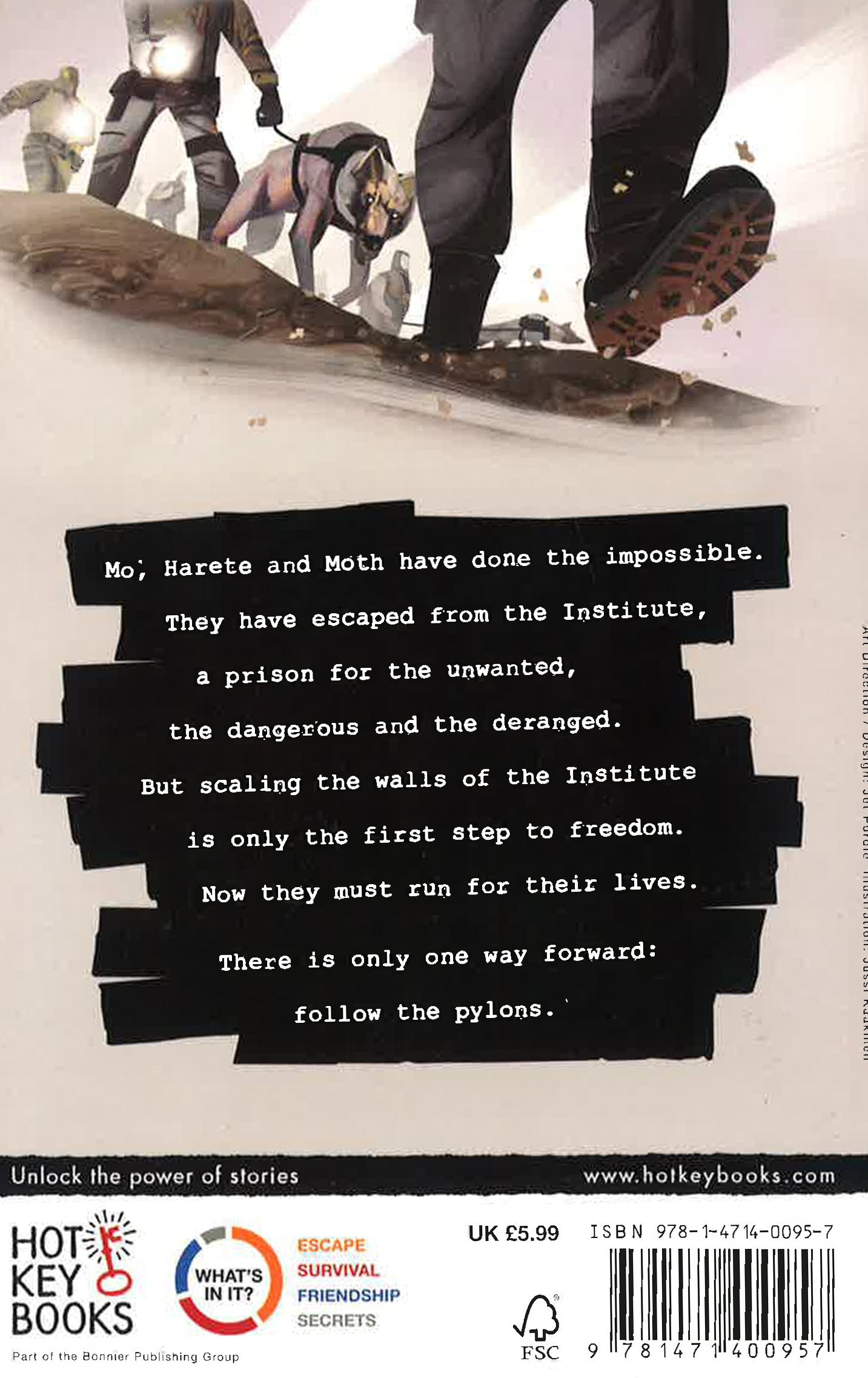 Like prison-break movie THE SHAWSHANK REDEMPTION with teenagers The story begins with Mo, Harete and Moth on the run, chased by the tyrannical forces of the Institute. Then, it flashes back to the weeks leading up to their break out. As the three teens follow a line of pylons towards the Other country and the hope of freedom, we see how they cobble together their friendship and the tools of their escape. As the teens weave together stories from their past, present and imaginations, the truth becomes harder and harder to bear. Only the long line of wires and the lure of another way of life pulls them towards their goal. A story of hope, peril and the fight against tyranny, written by a debut author with a degree in particle physics, every word is knocked against those surrounding it to form a fascinating action-packed read.