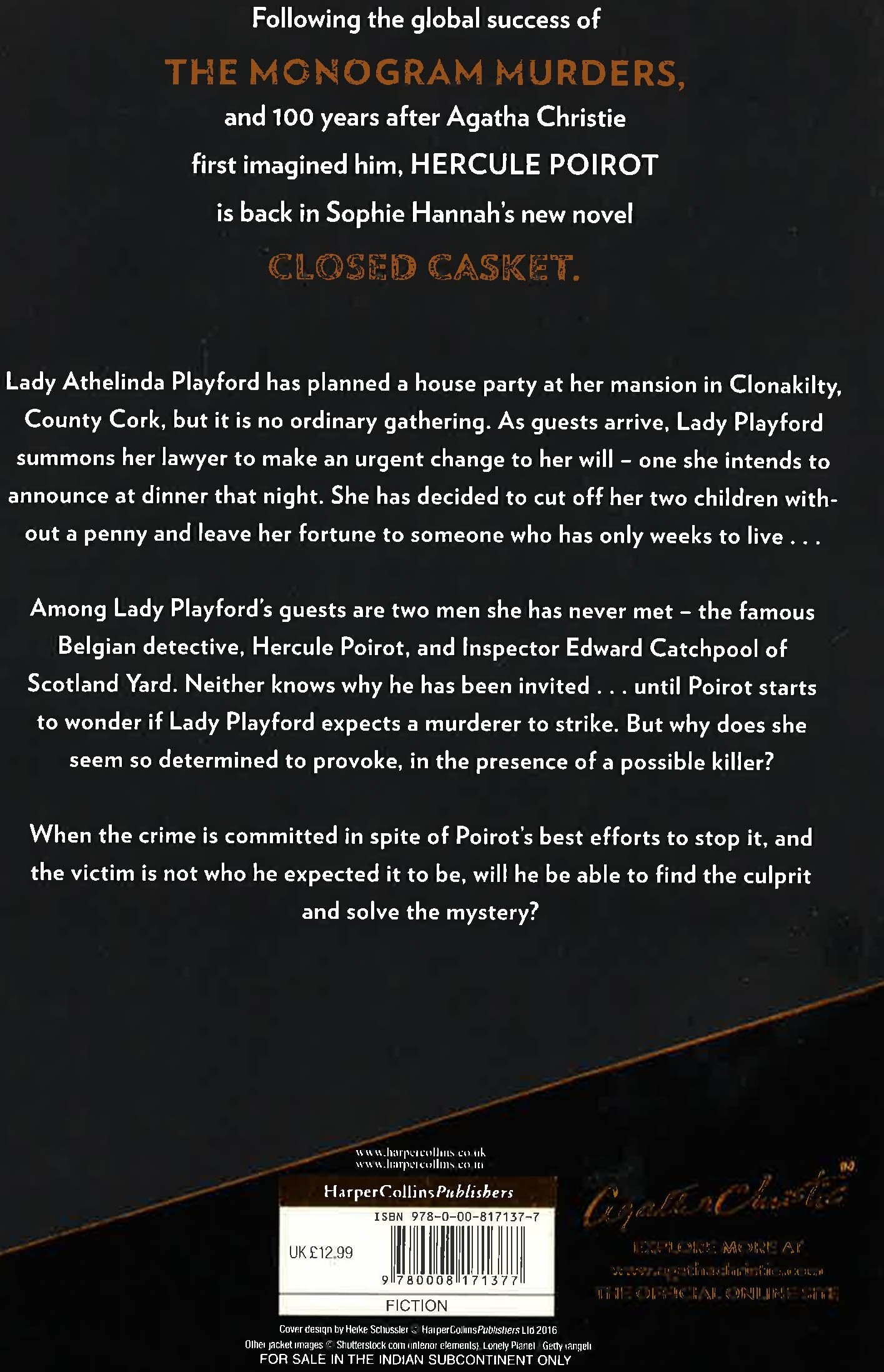 Hercule Poirot returns in another brilliant murder mystery that can only be solved by the eponymous Belgian detective and his `little grey cells'. `What I intend to say to you will come as a shock . . .' Lady Athelinda Playford has planned a house party at her mansion in Clonakilty, County Cork, but it is no ordinary gathering. As guests arrive, Lady Playford summons her lawyer to make an urgent change to her will - one she intends to announce at dinner that night. She has decided to cut off her two children without a penny and leave her fortune to someone who has only weeks to live . . . Among Lady Playford's guests are two men she has never met - the famous Belgian detective, Hercule Poirot, and Inspector Edward Catchpool of Scotland Yard. Neither knows why he has been invited . . . until Poirot starts to wonder if Lady Playford expects a murderer to strike. But why does she seem so determined to provoke, in the presence of a possible killer? When the crime is committed in spite of Poirot's best efforts to stop it, and the victim is not who he expected it to be, will he be able to find the culprit and solve the mystery? Following the phenomenal global success of The Monogram Murders, which was published to critical acclaim following a co-ordinated international launch in September 2014, international best-selling crime writer Sophie Hannah has been commissioned by Agatha Christie Limited to pen a second fully-authorised Poirot novel. The new book marks the centenary of the creation of Christie's world-famous detective Hercule Poirot, introduced in her first book The Mysterious Affair at Styles.