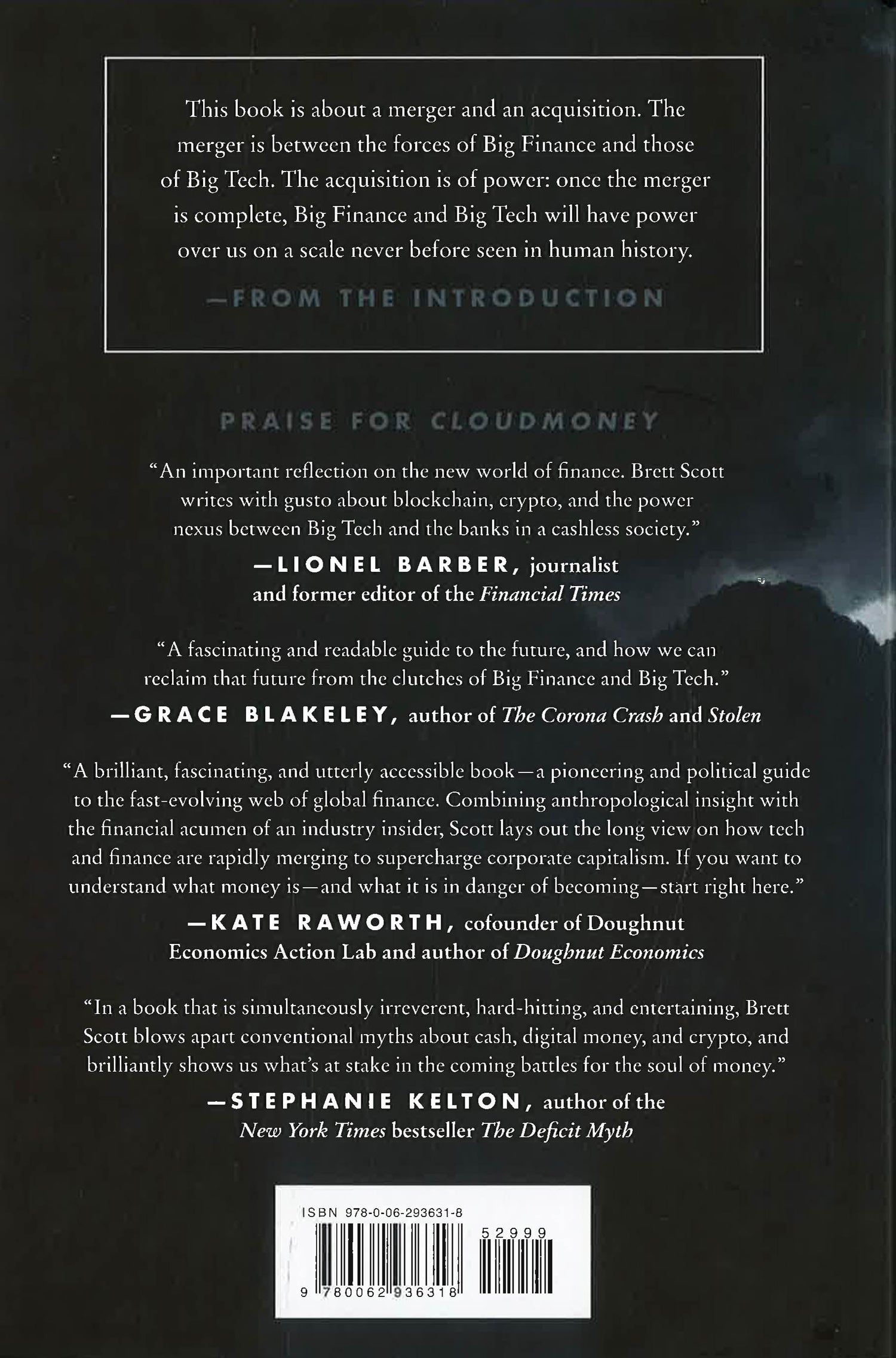 In Cloudmoney, Brett Scott tells an urgent and revelatory story about how the fusion of Big Finance and Big Tech requires “cloudmoney”—digital money underpinned by the banking sector—to replace physical cash. He dives beneath the surface of the global financial system to uncover a long-established lobbying infrastructure: an alliance of partners waging a covert war on cash. He explains the technical, political, and cultural differences between our various forms of money and shows how the cash system has been under attack for decades, as banking and tech companies promote a cashless society under the banner of progress.