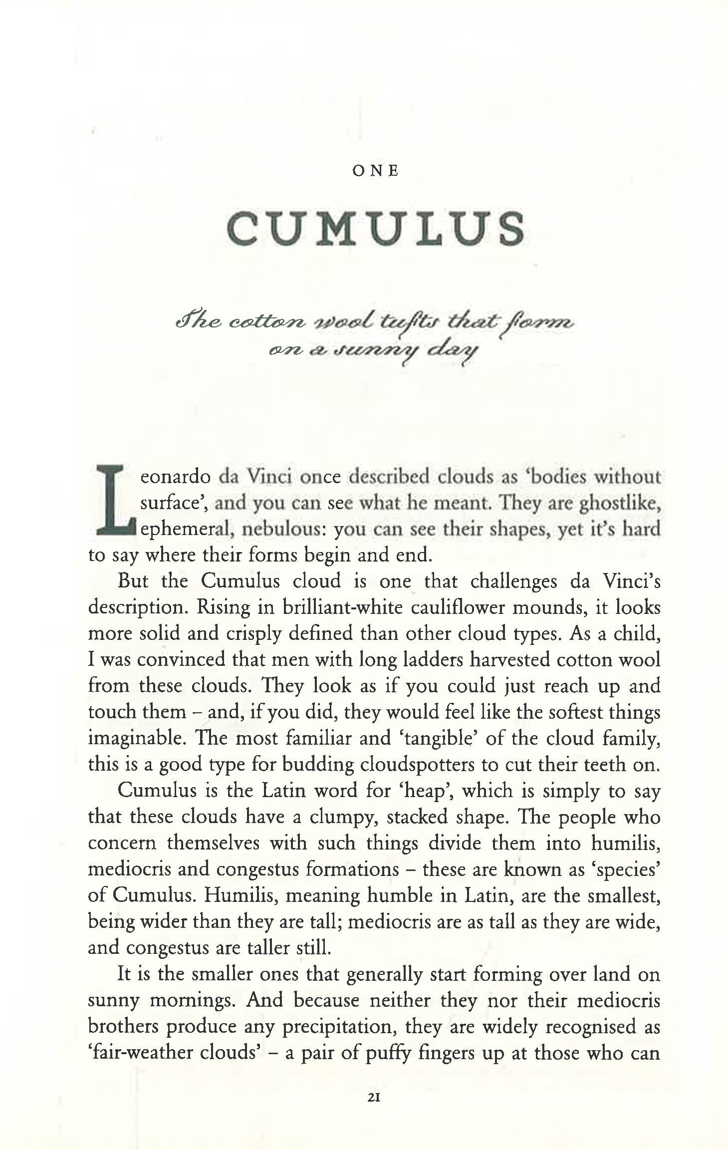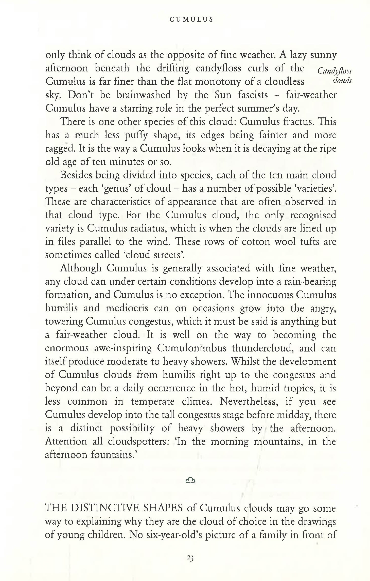 'The clouds are nature's poetry, and the most egalitarian of her displays, since everyone has an equally fantastic view of them. Clouds are for dreamers, and their contemplation benefits the soul. Yet their beauty is so everyday as to be in danger of being overlooked ...'