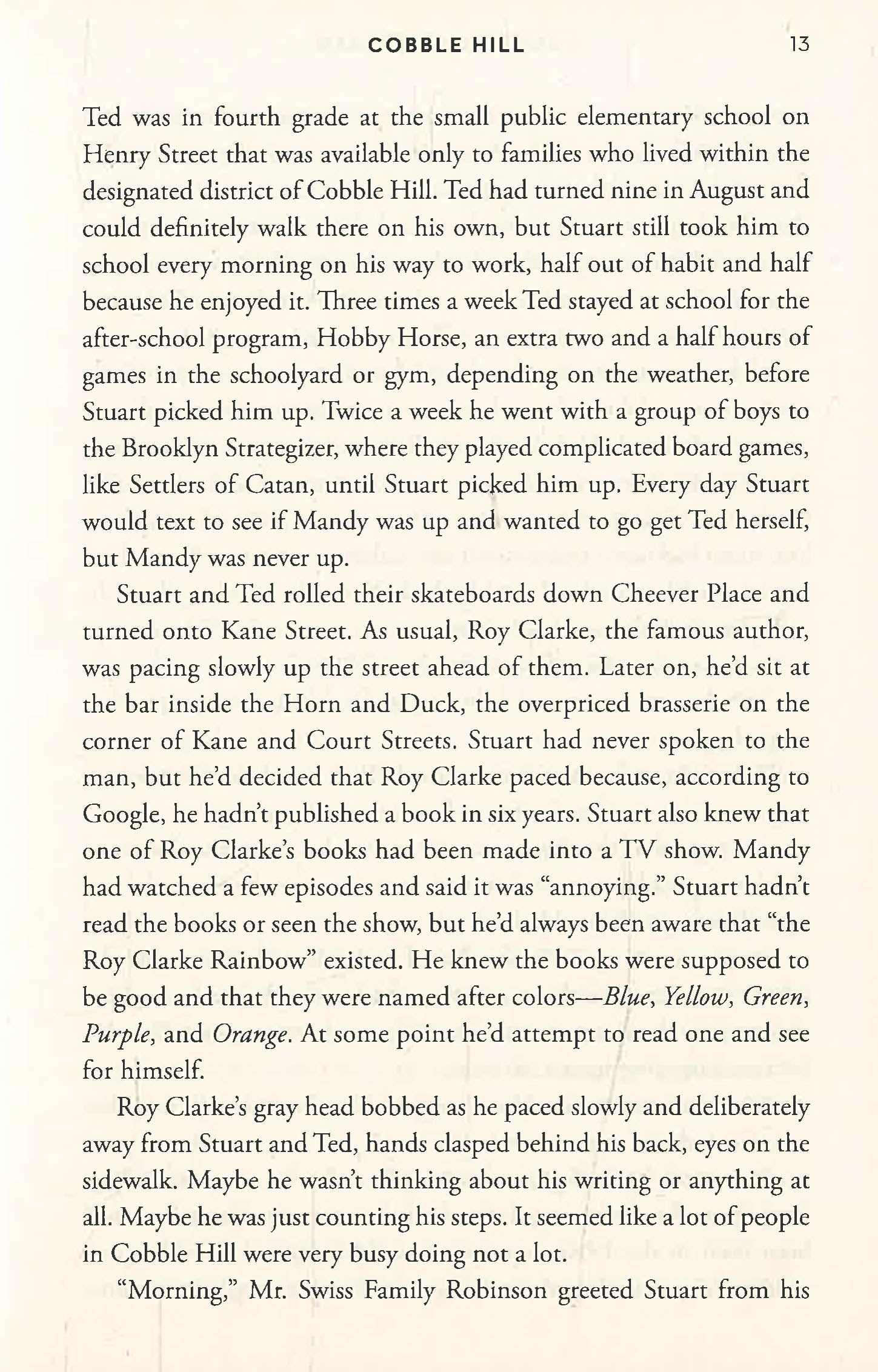 In the eclectic Brooklyn neighbourhood of Cobble Hill, the lives of four married couples and their children are about to flip from complicated to combustible...Mandy is so underwhelmed by motherhood that she's faking a debilitating disease to get the attention of her ex-boyband celebrity husband Stuart. There's the unconventional new school nurse, Peaches, who Stuart secretly has a crush on, and her disappointing husband Greg, who wears noise-cancelling headphones - everywhere. A few streets away, Roy, a well-known British novelist, has lost his way with his next novel - and his marriage to Wendy, who knows exactly where she's going. Around the corner, Tupper struggles to salvage his career and to pin down his elusive artist wife Elizabeth. She remains...elusive. Throw in two hormonal teenagers, a ten-year-old pyromaniac and a lot of hidden cameras, and Cobble Hill becomes an explosive mix of egos, desires and secrets. Let the neighbours gossip... What's the worst that can happen?