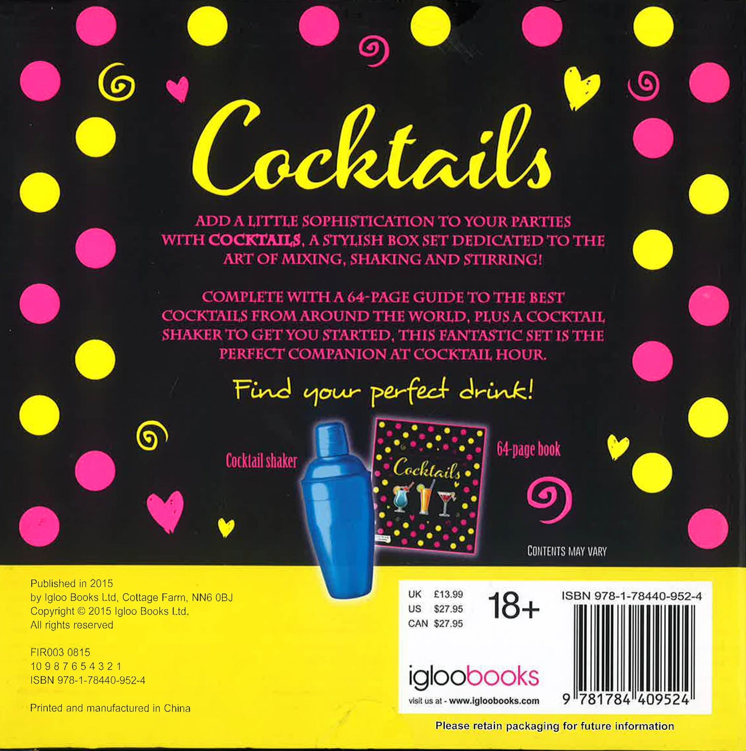 Add a little sophistication to your parties with Cocktails, a stylish box set dedicated to the art of mixing, shaking and stirring! Complete with A-64 page guide to the best cocktails from around the world, plus a cocktail shaker to get you started, this fantastic set is the perfect companion at cocktail hour.
