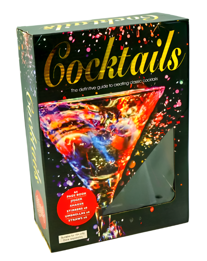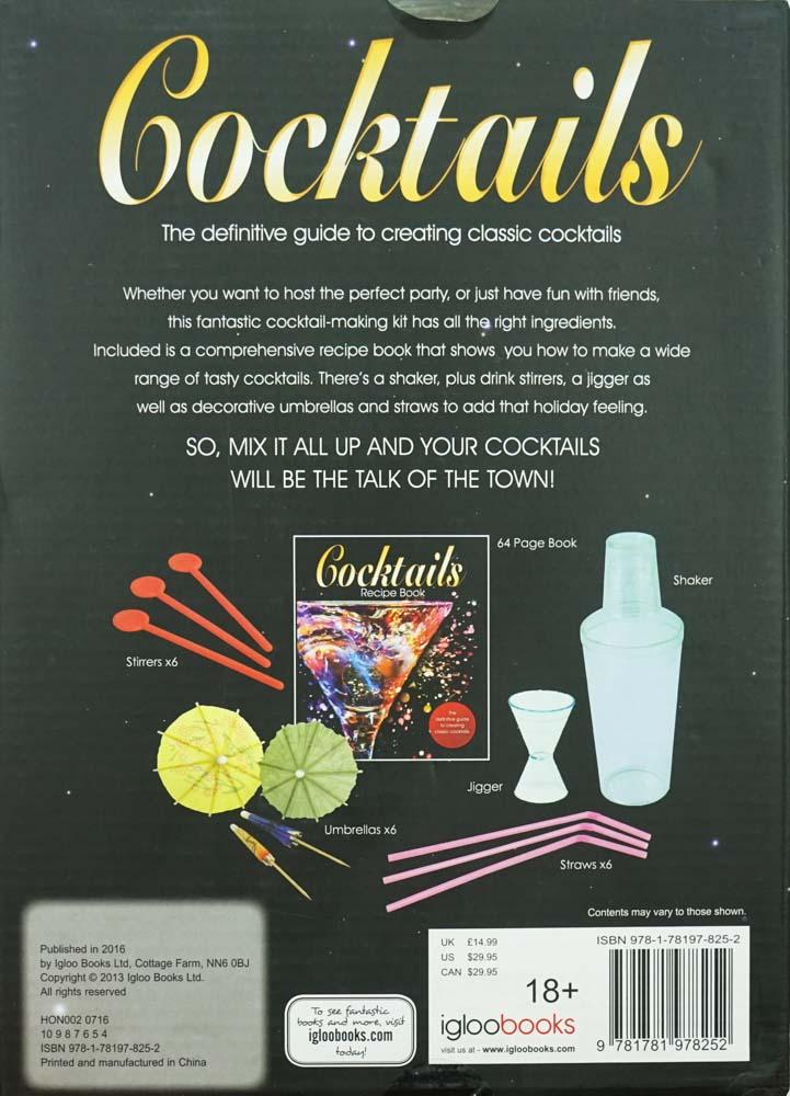 The definitive guide to creating classic cocktails. Whether you want to host the perfect party, or just have fun with friends, this fantastic cocktail -making kit has all the right ingredients. Included is a comprehensive recipe book that shows you how to make a wide range of tasty cocktails. There's a shaker, plus drink stirrers, a jigger as well as decorative umbrellas and straws to add that holiday feeling. So, mix it all up and your cocktails will be the talk of the town.