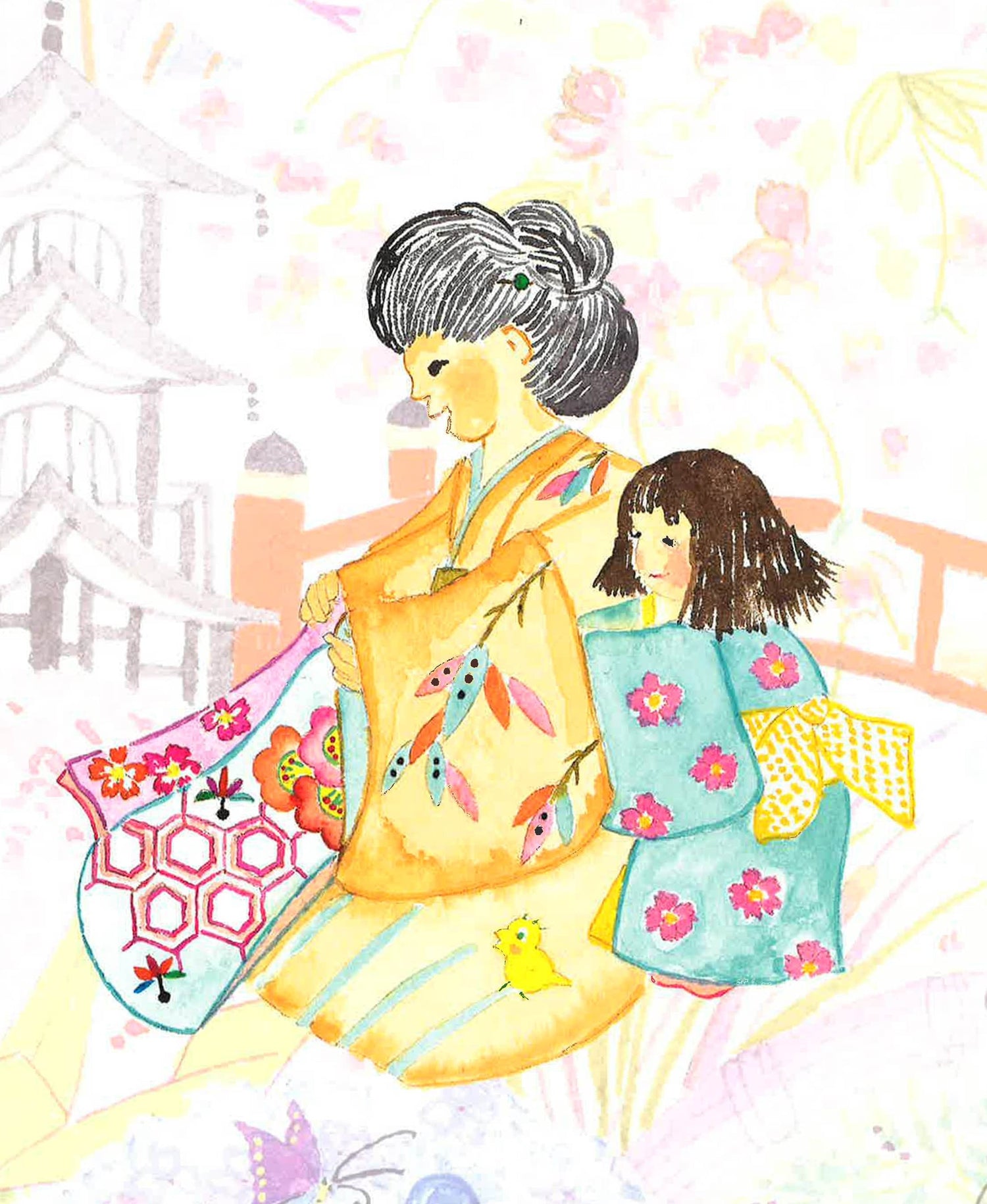 Inspired by the author's childhood memories of the Japanese countryside, this entrancing picture book, illustrated with beautiful watercolor drawings, tells the story of Coco-Chan, who must wait patiently for her mother to finish sewing her new kimono. As Mama stitches away, Coco-Chan's attention skips to a dragonfly at the window who beckons her outside. Stepping into the garden, Coco-Chan discovers a wonderful world where she is able to chat with the bugs and beetles among the flowers. Immediately engaging to young children, this delightful tale of a kimono literally coming to life will inspire boys and girls to seek a world of wonder just outside their doors. Quilting and fabric enthusiasts will love the beautiful kimono designs that inspired the story. Fun for kids, the book also includes a simple pattern for a cut-and-fold paper kimono.