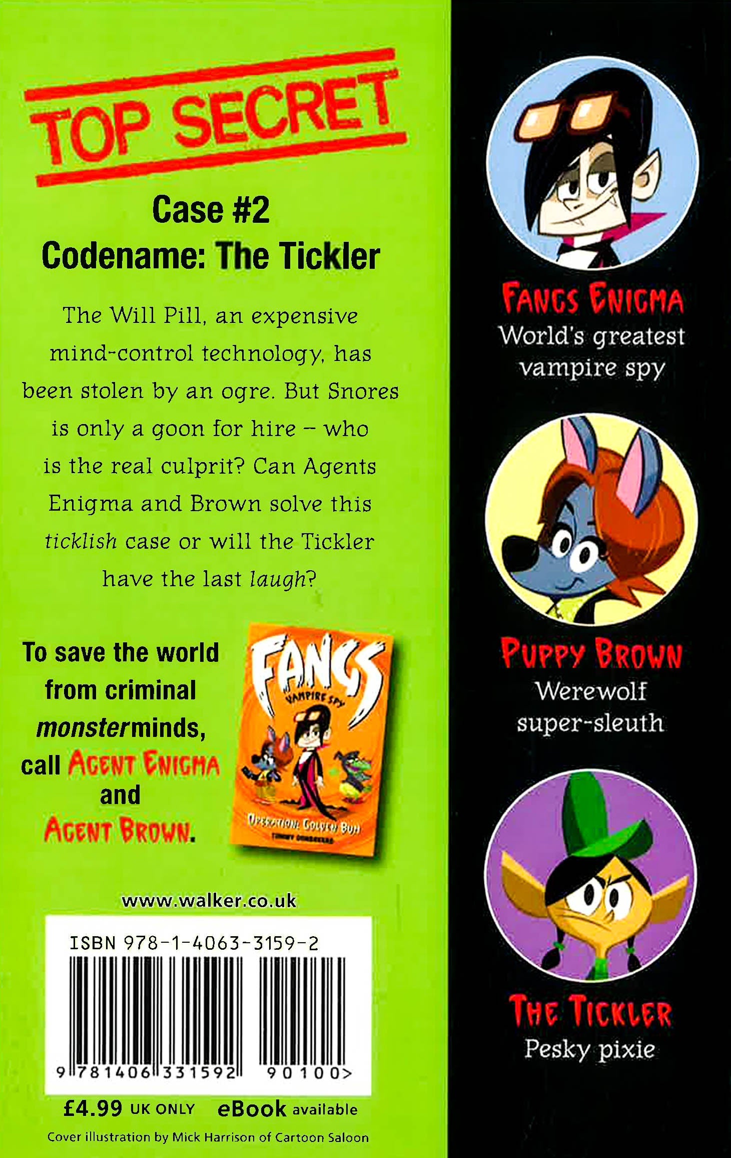 Special Agent Fangs Enigma and his sidekick, werewolf Agent Puppy Brown, were recruited by secret intelligence agency MP1 (Monster Protection, 1st division) to stop the world's super(natural) villains and monster criminals from realizing their evil plans. In Codename: The Tickler, MP1's expensive mind-control technology, the Will Pill, has been stolen by an ogre named Snores. He is only a goon for hire, though - so who is the real culprit? Can Agents Enigma and Brown solve this ticklish case or will the mysterious Tickler have the last laugh?