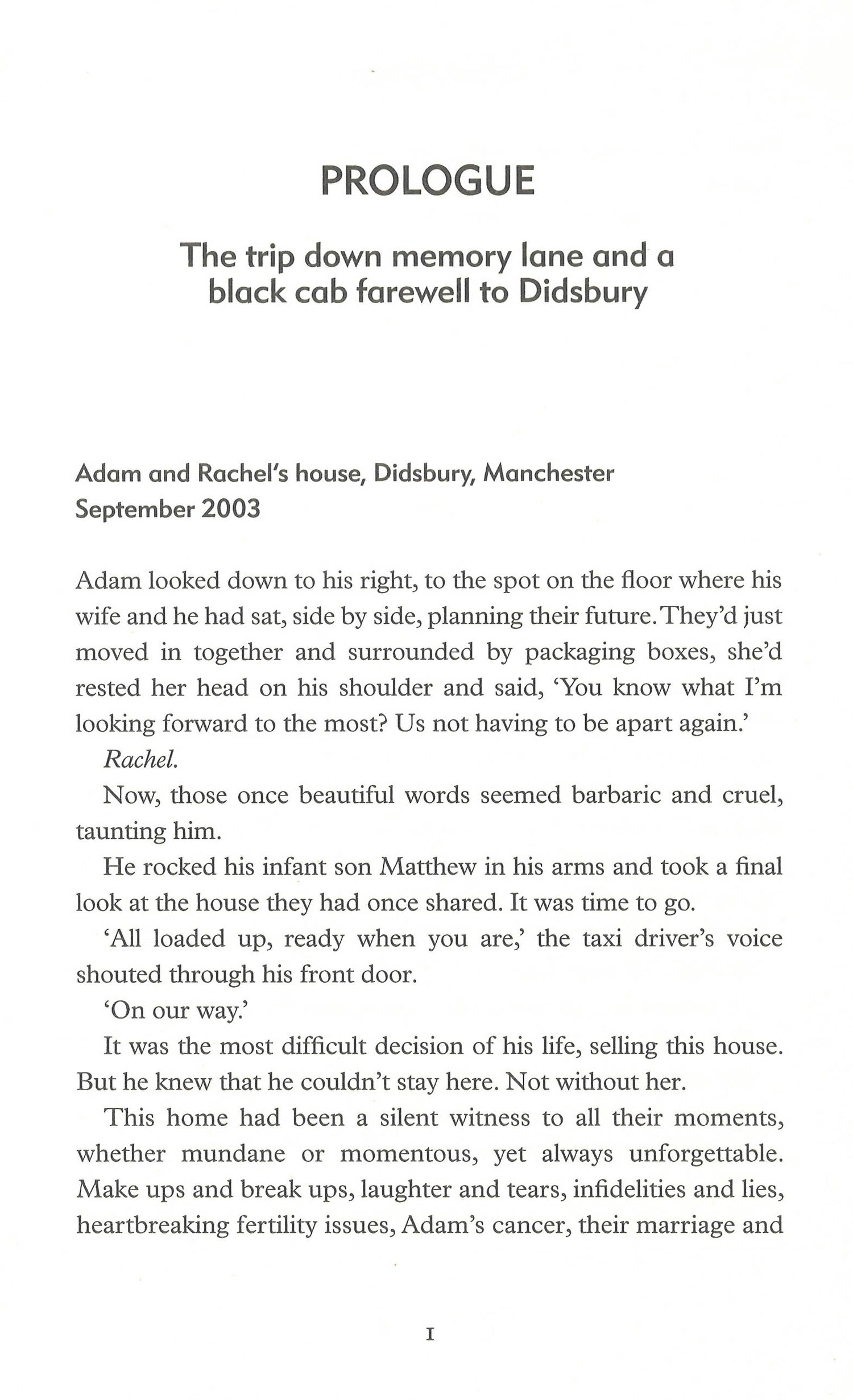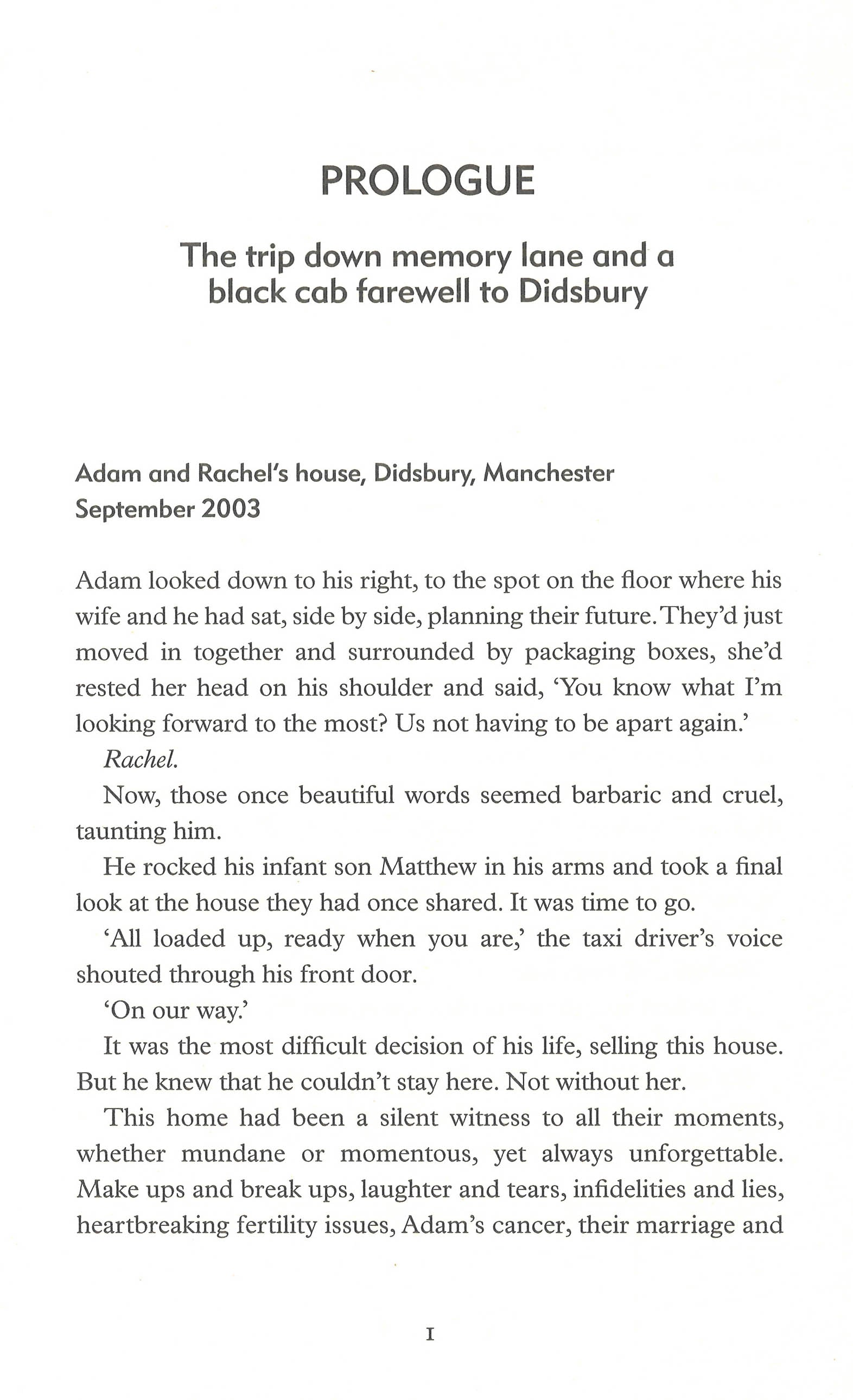 Reeling from the sudden death of Rachel, his beloved wife, Adam has no time to grieve. He has to keep going, for the sake of their baby son.