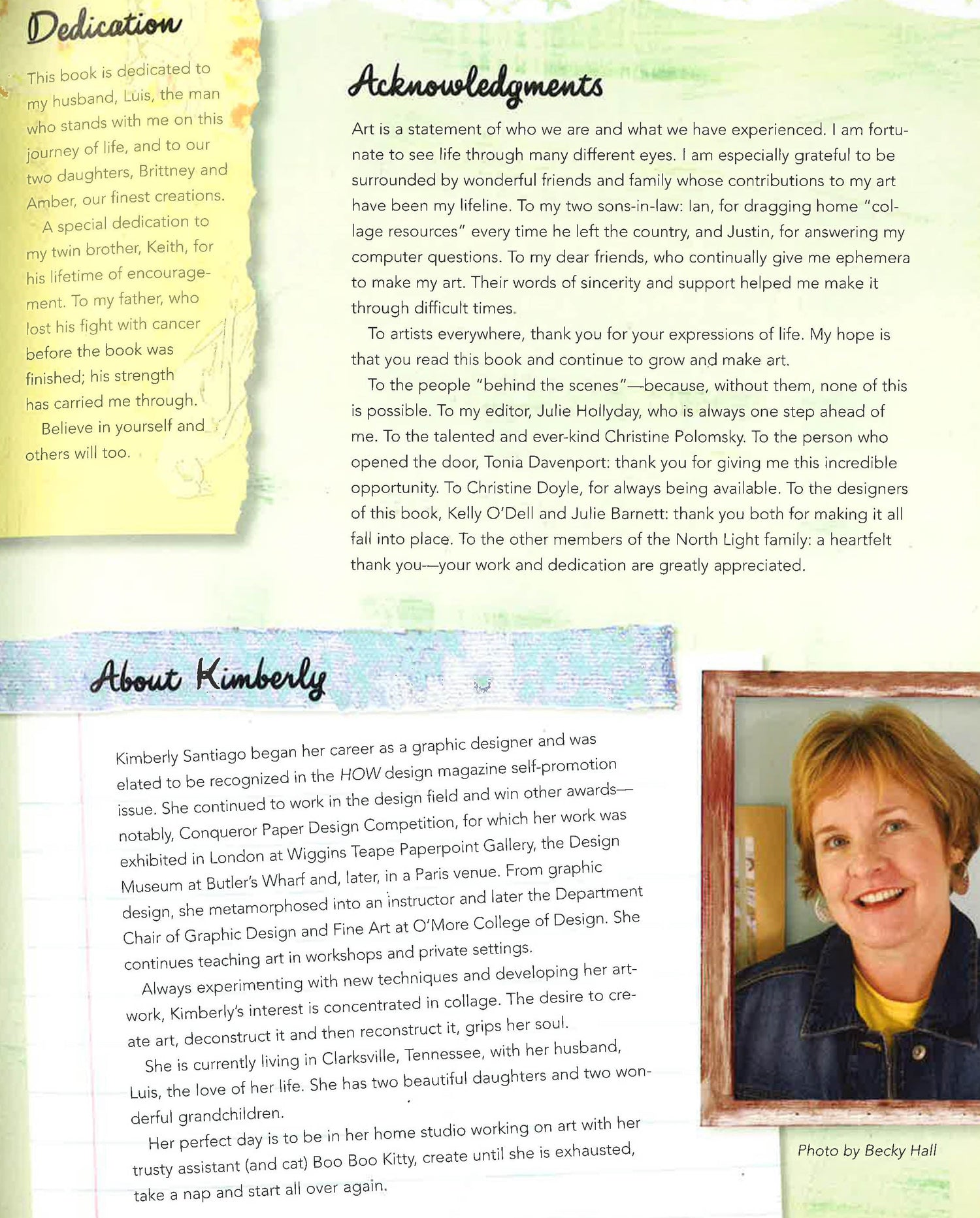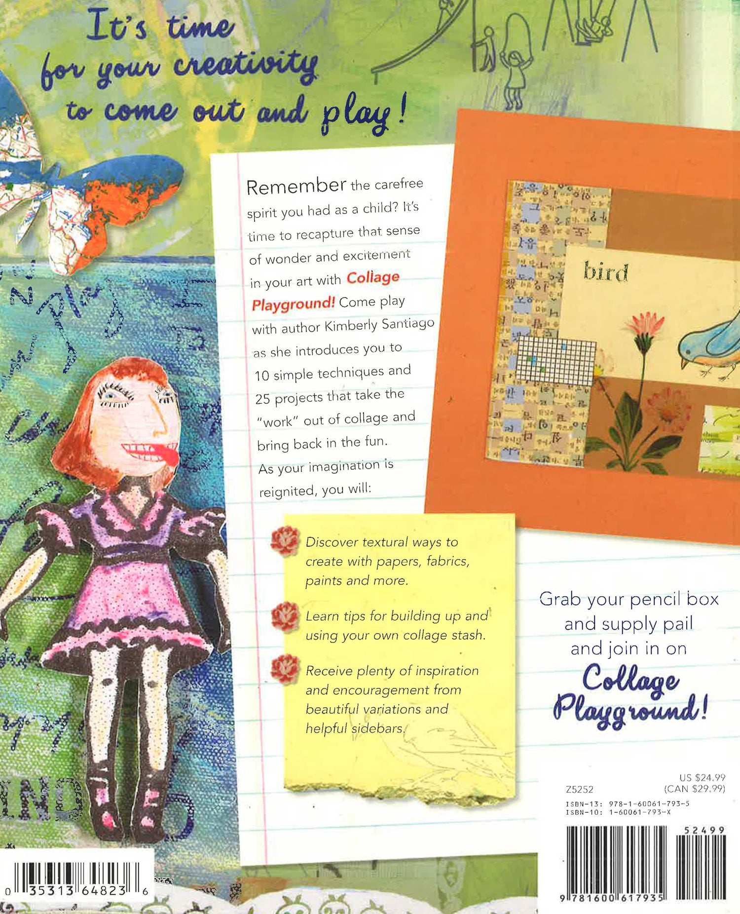 It's time for your creativity to come out and play! Remember the carefree spirit you had as a child? It's time to recapture that sense of wonder and excitement in your art with Collage Playground! Come play with author Kimberly Santiago as she introduces you to 10 simple techniques and 25 projects that take the "work" out of collage and bring back in the fun. As your imagination is reignited, you will: * Discover textural ways to create with papers, fabrics, paints and more * Learn tips for building up and using your own collage stash* Receive plenty of inspiration and encouragement from beautiful variations and helpful sidebars Grab your pencil box and supply pail and join in on Collage Playground!