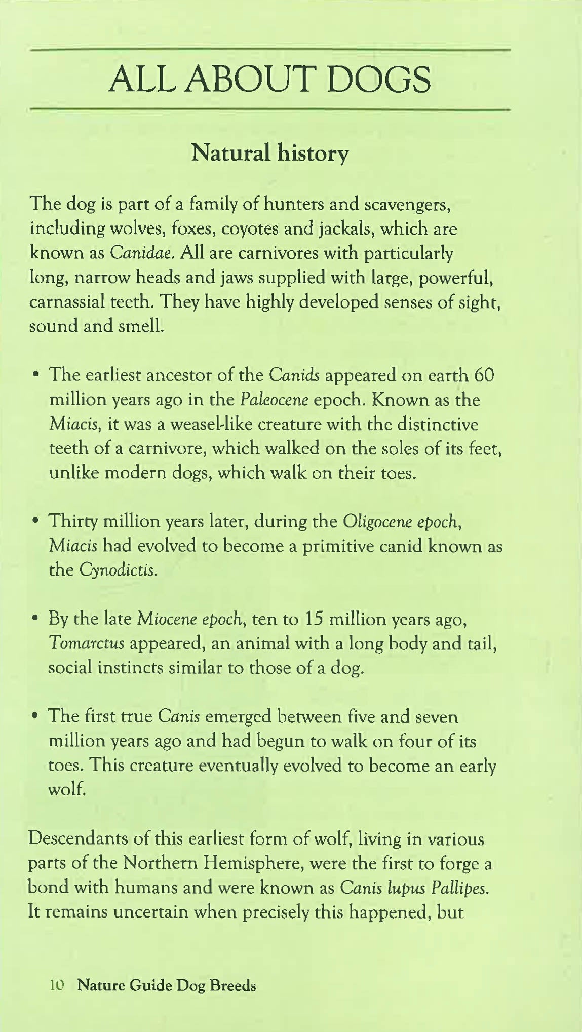 A beautifully illustrated guide to over 130 breeds of dog. Originally kept as hunters and workers, dogs have evolved in history to occupy a unique position in the human world, unparalleled by any other successfully domesticated animal. This book is the ideal introduction to 'man's best friend'. Each entry in the book includes: - A full-colour photograph and description of the breed - Details on size, lifespan and identifying features - Notes on the breed's character and suitability as a pet - In addition there is advice on choosing a puppy, nutrition and feeding, training and kenneling, and showing. - A section on dog trivia and a glossary of appropriate terms complete this easy-to-use guide