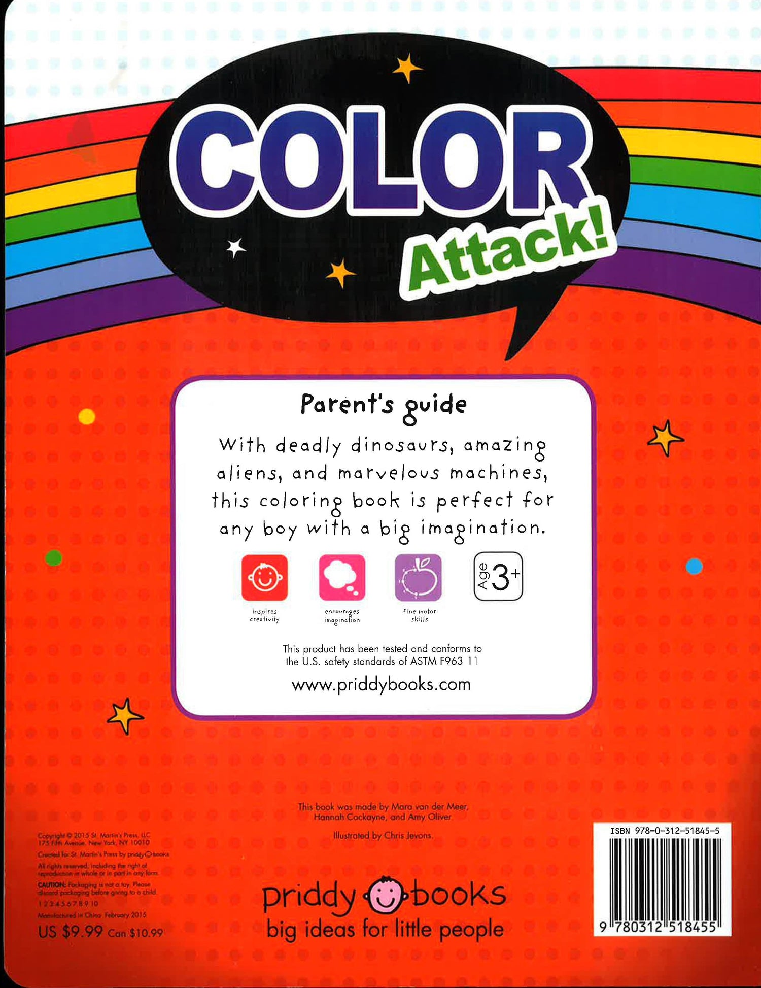 There are deadly dinosaurs, menacing monsters, amazing aliens, marvelous machines, and loads of awesome cool stuff in this fantastic giant coloring book. Complete with its own stackable five-color crayon, this activity-packed book will inspire hours of fun and imaginative creativity.