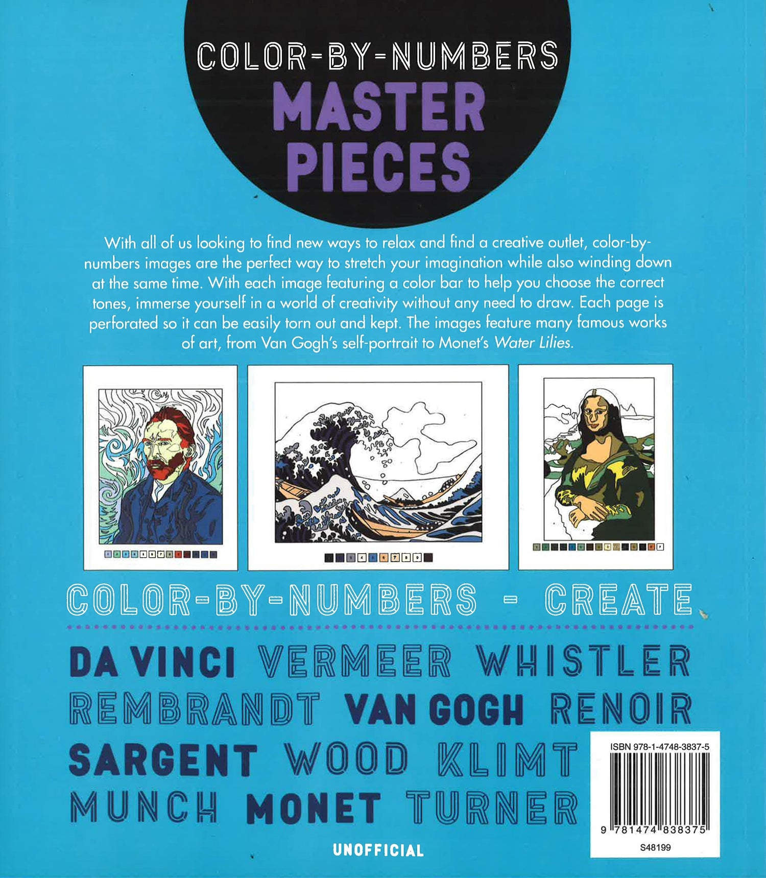 With all of us looking to find new ways to relax and to find a creative outlet, color-by-numbers images are the perfect way to stretch your imagination while also winding down at the same time. With each image featuring a color bar to help you choose the correct tones, immerse yourself in a world of creativity without any need to draw. Each page is perforated so it can be easily torn out and kept. The images feature many famous works of art, from Van Gogh's self-portrait to Monet's Water Lilies.