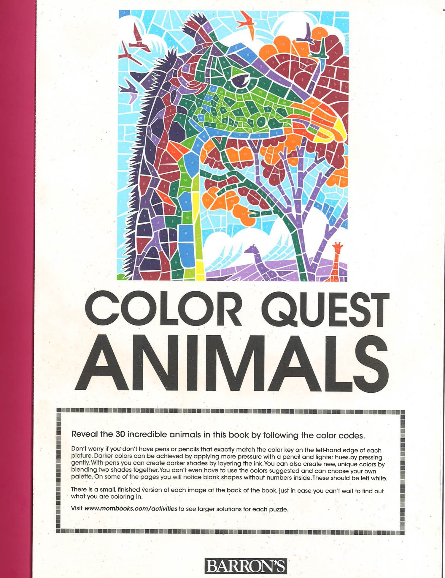 Calling all puzzle lovers, animal enthusiasts, and challenge seekers! Color Quest Animals features 30 wild and wonderful creatures that are just waiting to be revealed. Grab your colored pens or pencils and start shading in these shapes...and in no time at all, you'll free the images concealed on the page. Your odyssey will take you on a magical journey to find animals that are hiding in plain sight, including a magnificent mandrill, a colorful kingfisher, or a beautiful butterfly. Once you've completed them, perforated pages allow you to pull them out--making them perfect for decorating, framing, or giving as gifts. It's all just waiting to be liberated by you as you color each one, breathe new life into these pages, and uncover stunning and intricate works of art in your Color Quest.